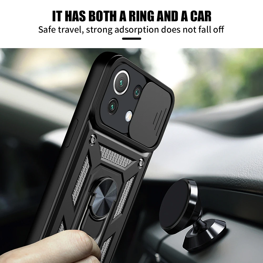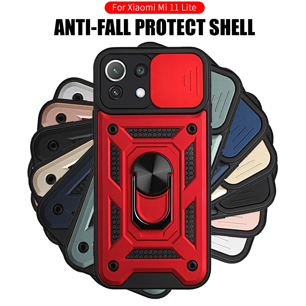 Бронированный металлический чехол для Xiaomi Mi 11 Lite 5G держатель для кольца на палец чехол для Mi 11 Lite 11 Light Push Pull Camera Protection Cose