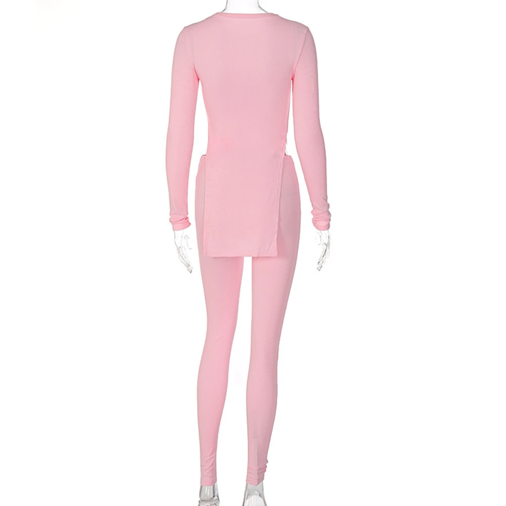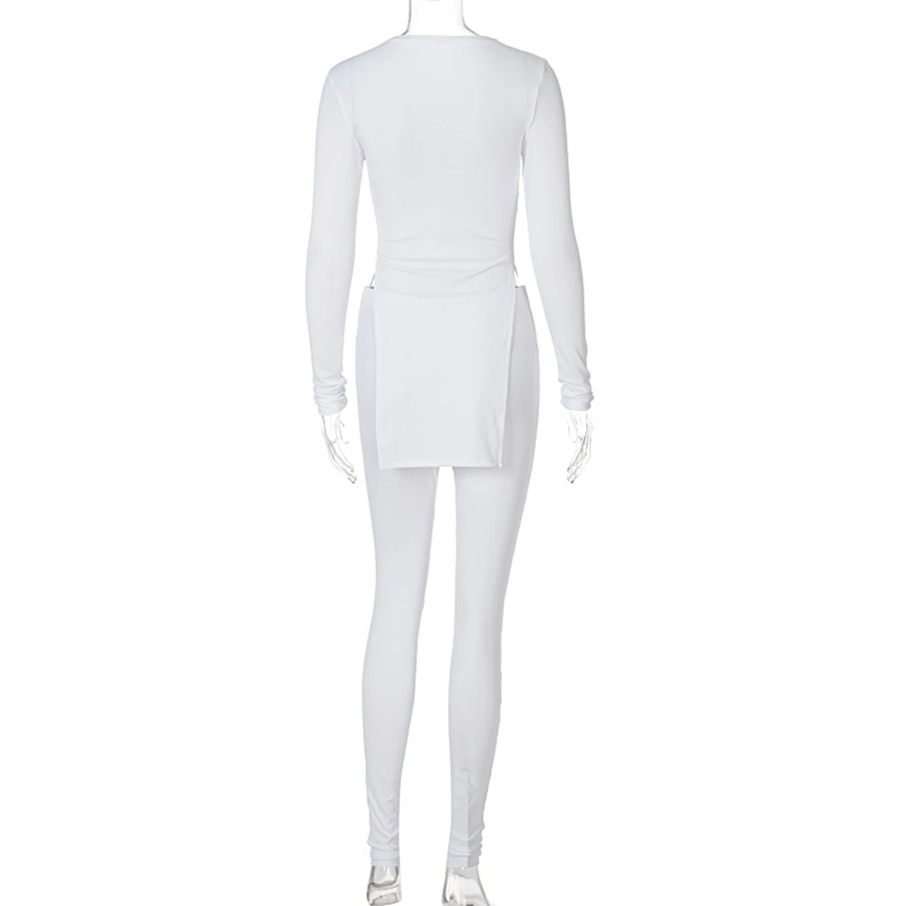 Облегающий комплект из 2 предметов для женщин, Топ с длинным рукаво...