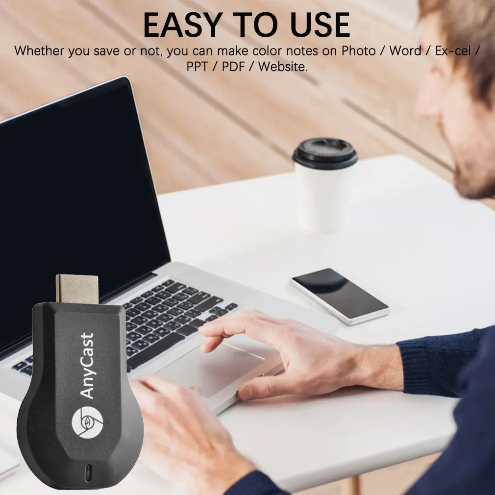 Особенности:1. Беспроводной Интернет: Поддержка WiFi 802,11 b / g / n беспроводное соединение.2. Многоэкранное Взаимодействие: Поддержка EZCast, DLNA, Miracast, EZAir (Airpaly), многоэкранное взаимодействие с одной кнопкой.3. Простота в использовании: независимо от того, сохраняете вы или нет, вы можете делать цветные заметки на фото/Word / Excel / PPT / PDF/веб-сайте.4. Защита от помех: Поддержка Wi-Fi 802,11 b / g / n беспроводное соединение и сильная способность от помех.5. HD Выход: Поддержка HDMI 1,4, 1080P full HD выход.