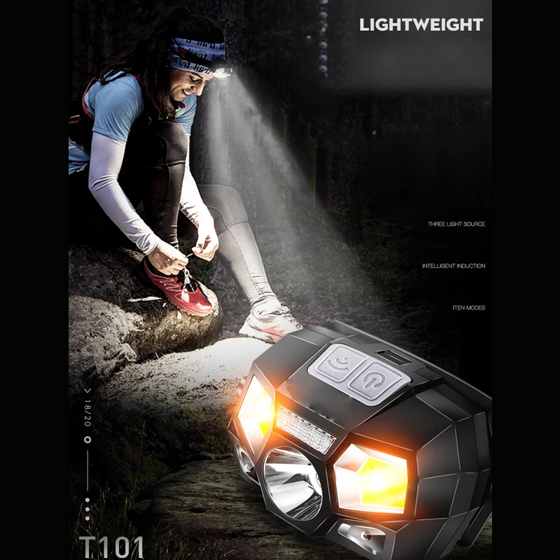 Светодиодный налобный фонарь с датчиком движения, 20000 лм