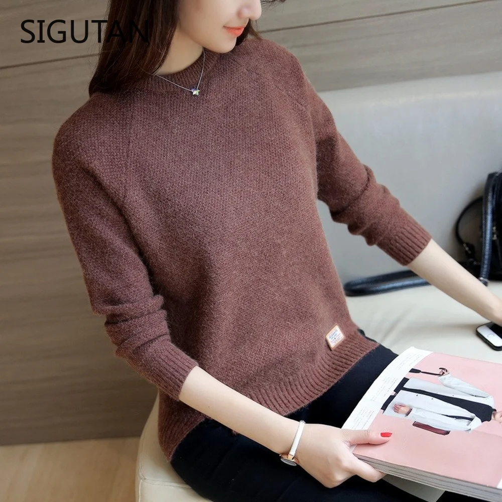 Женские свитера и пуловеры на весну и осень, Женский Однотонный пуловер с длинным рукавом, женский модный Повседневный вязаный свитер