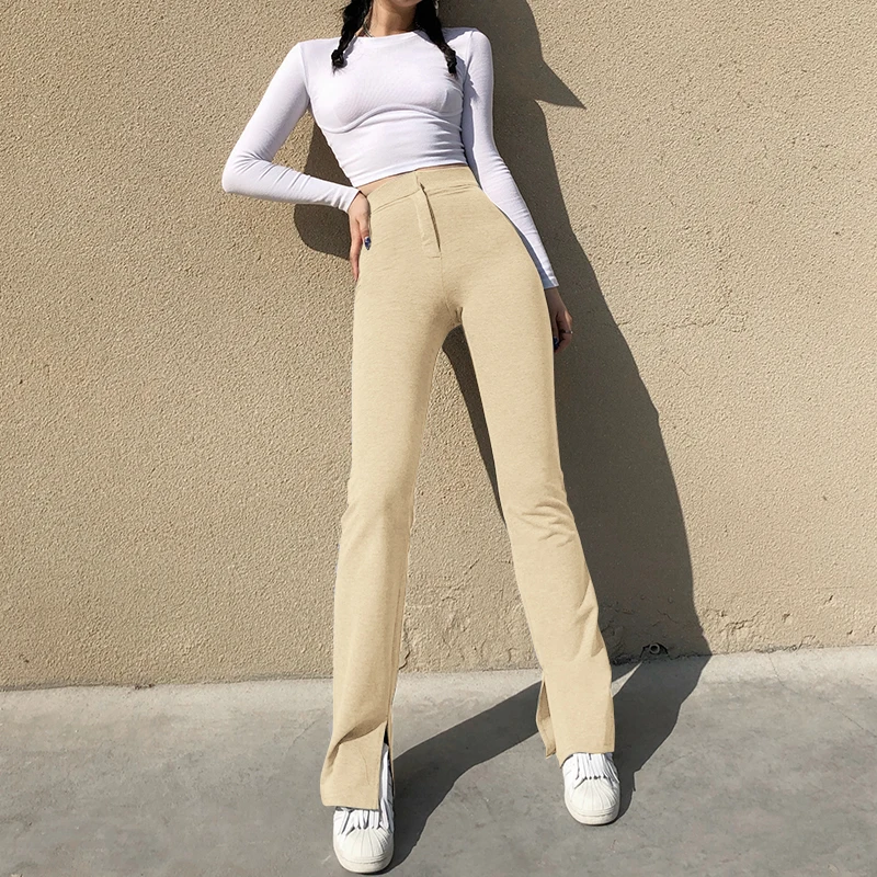 Узкие брюки-клеш IAMSURE, женские повседневные однотонные брюки с в...