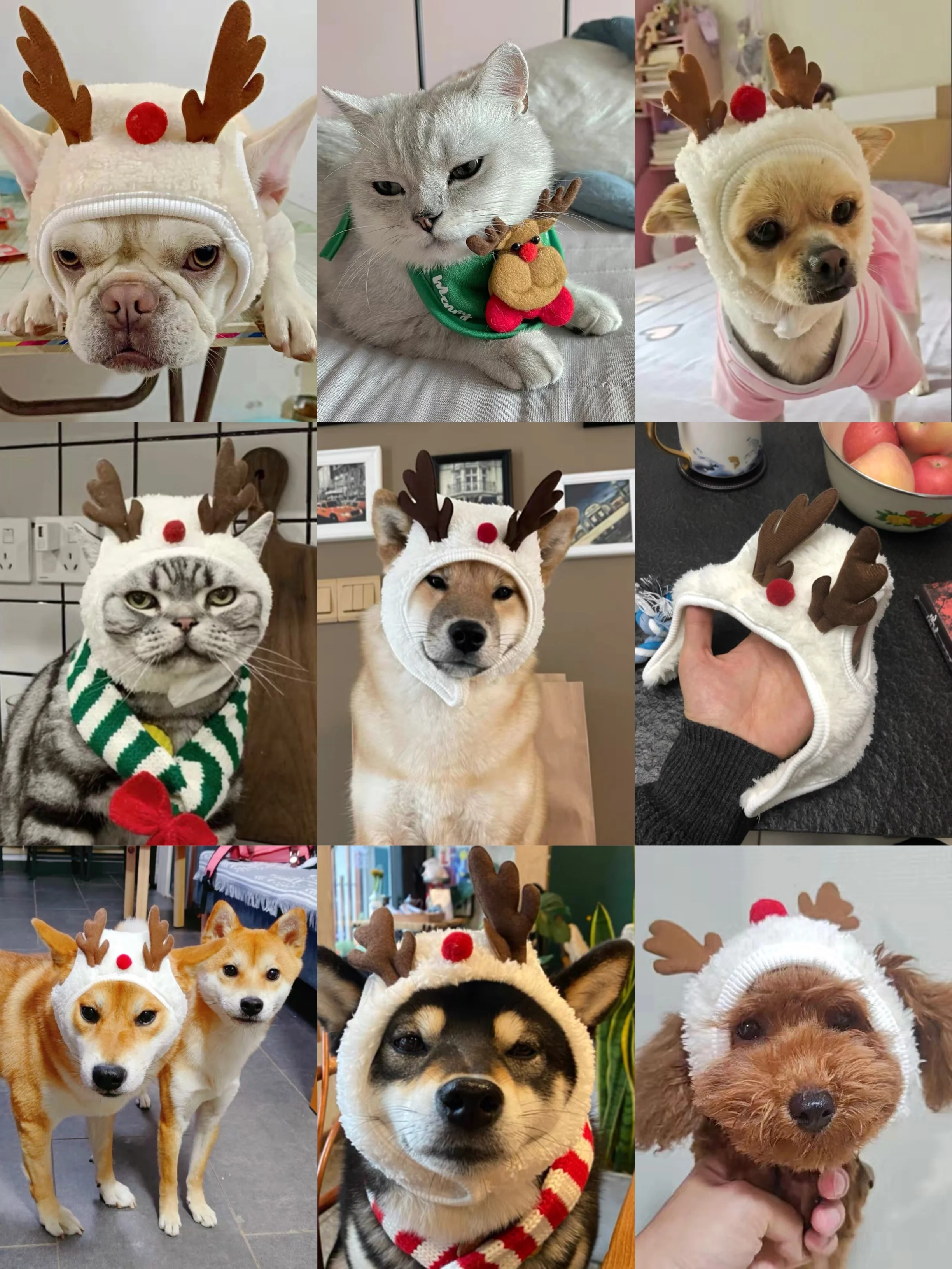 Рождественская шапка для домашних животных, милые оленьи рога, слюн...