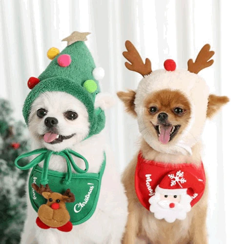 Рождественская шапка для собак и кошек, слюнявчик, Тедди для борьбы...