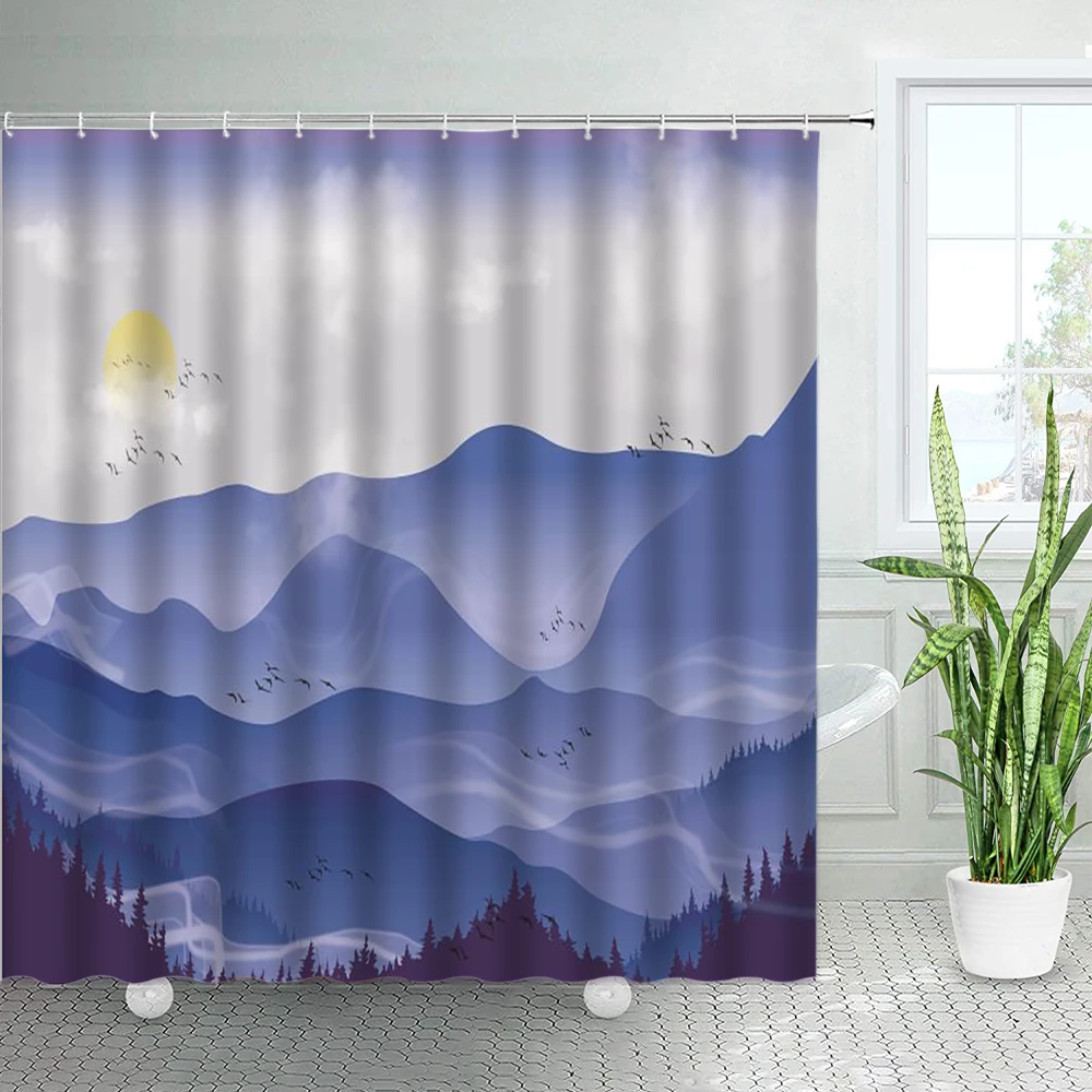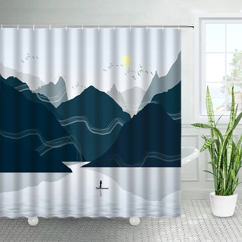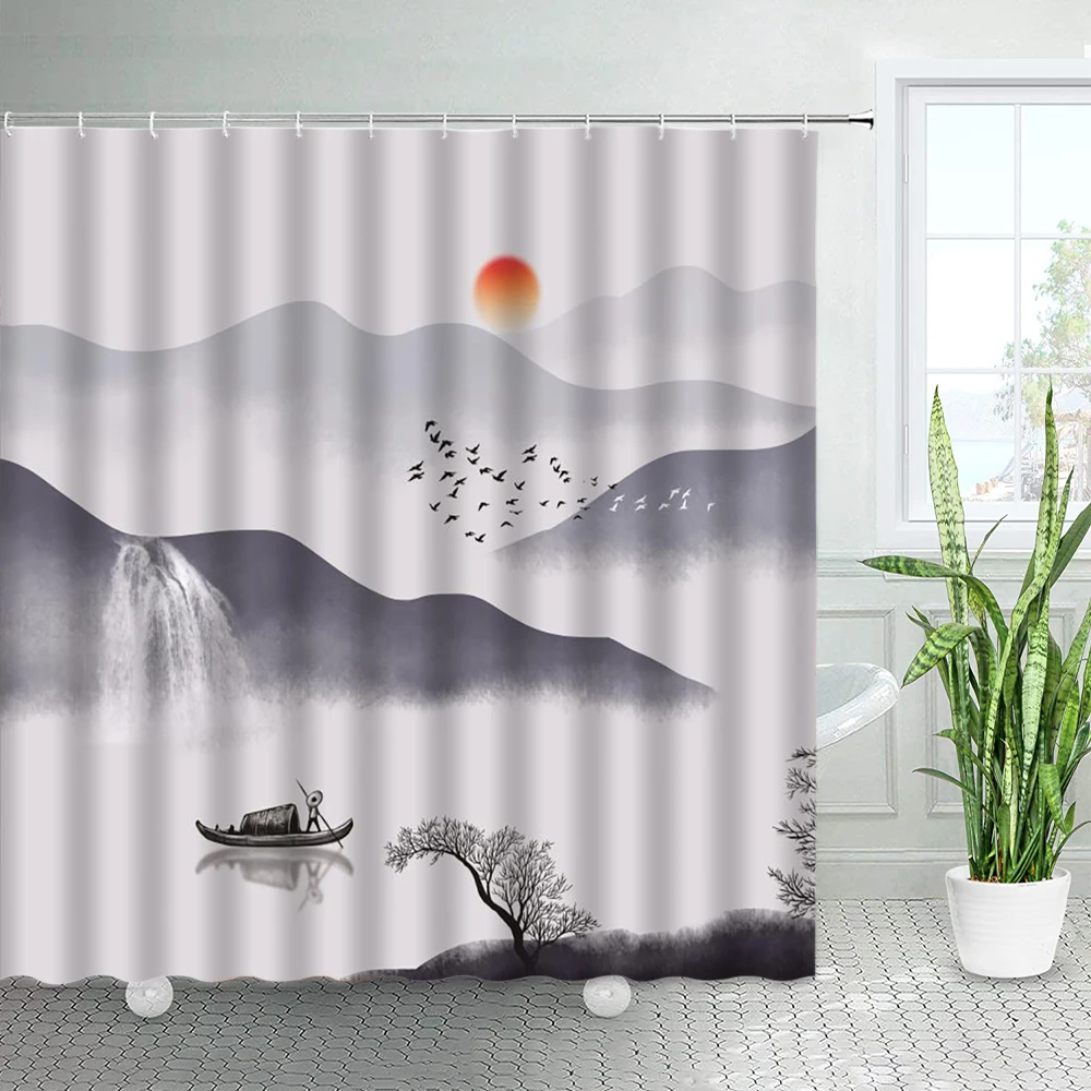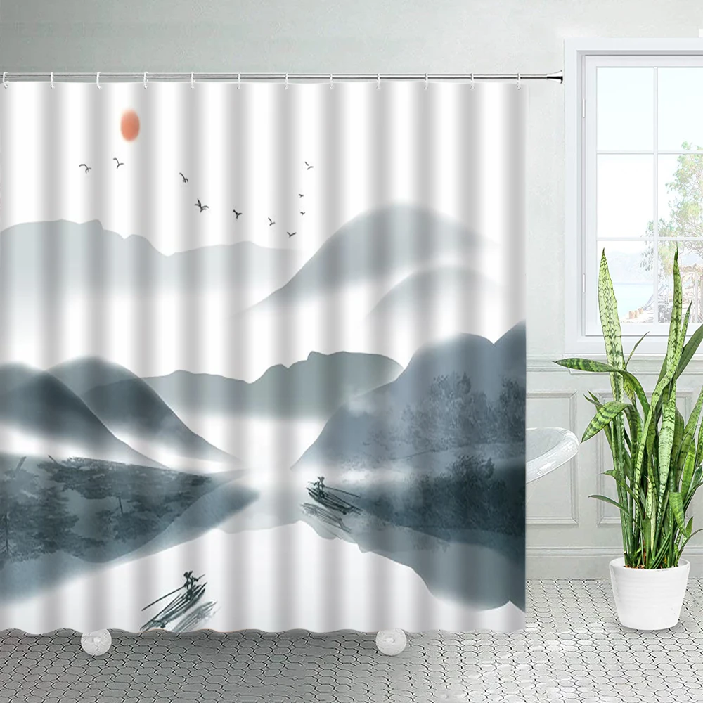 Чернильные занавески для душа с пейзажем акварель горный лес китайский стиль абстрактное искусство Полиэстеровая ткань декор для ванной крючки