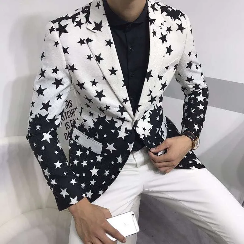 Приталенный пиджак со звездами, мужской блейзер для сцены, клуба, т...