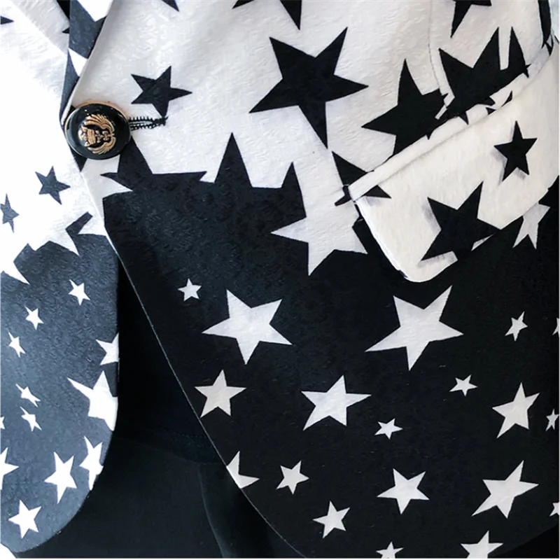 Женский облегающий костюм-куртка, новый дизайн 2021 года, блейзер с принтом звезд, Клубное платье, смокинг для жениха, мужской костюм