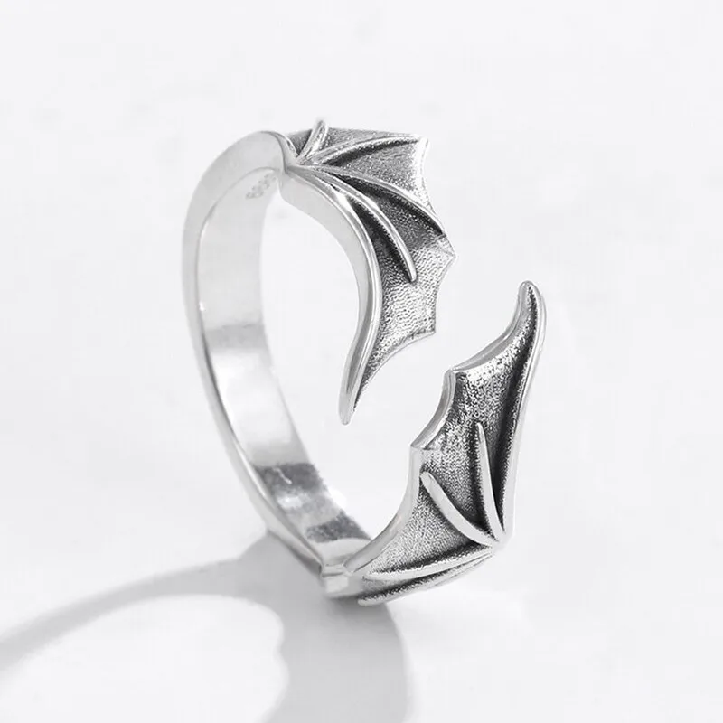 Кольца FOXANRY 925, Модные Винтажные креативные кольца со штампами в стиле INS, хип-хоп, крылья летучая мышь, сделайте старые дизайнерские тайские серебряные ювелирные изделия, оптовая продажа