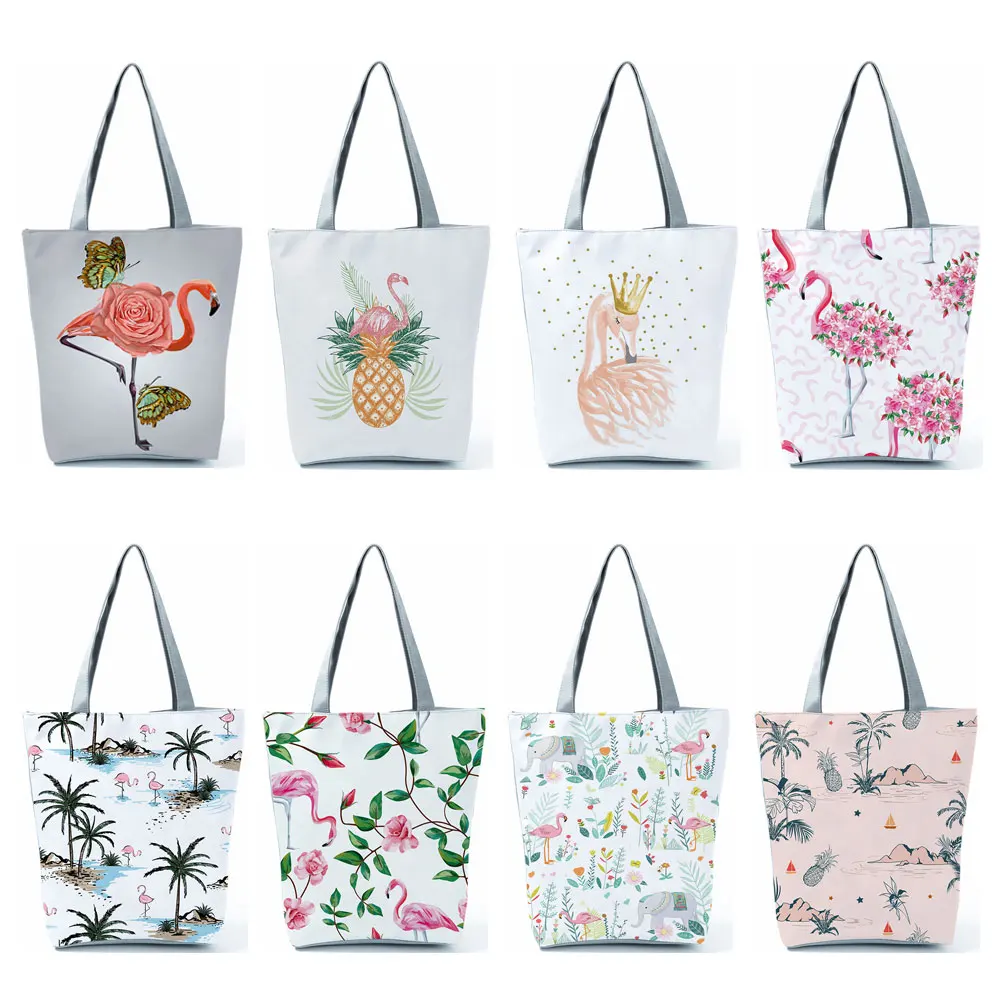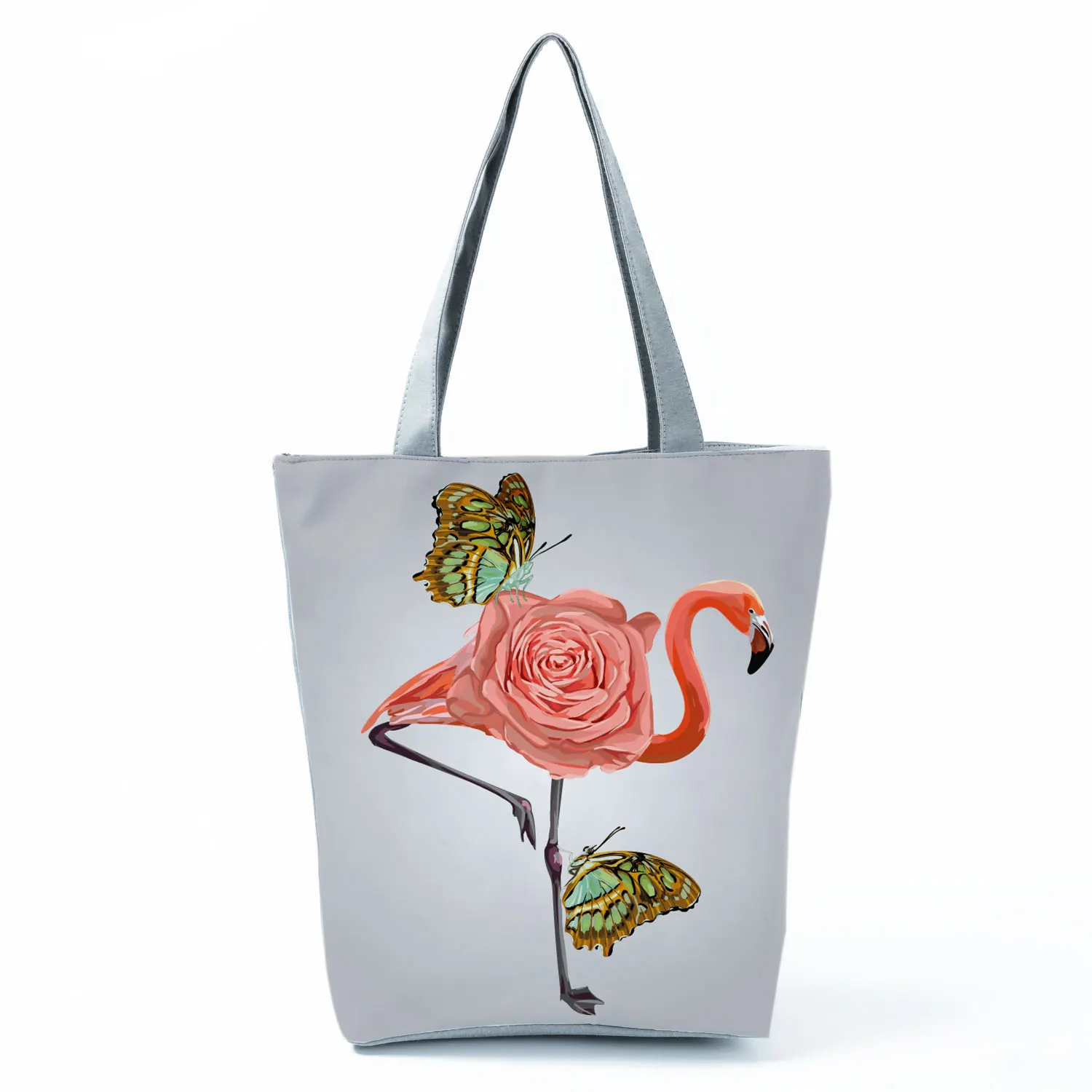Женские сумки-тоут с принтом фламинго, многоразовые сумки через плечо для продуктов, складные сумки для путешествий, Экологичная сумка для покупок, сумки для отдыха