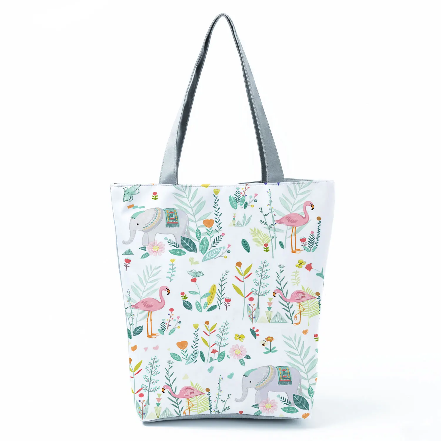 Женские сумки-тоуты с принтом фламинго, многоразовые продуктовые сумки через плечо, складные сумки для поездок, Экологичная сумка для покупок, сумки для отпуска
