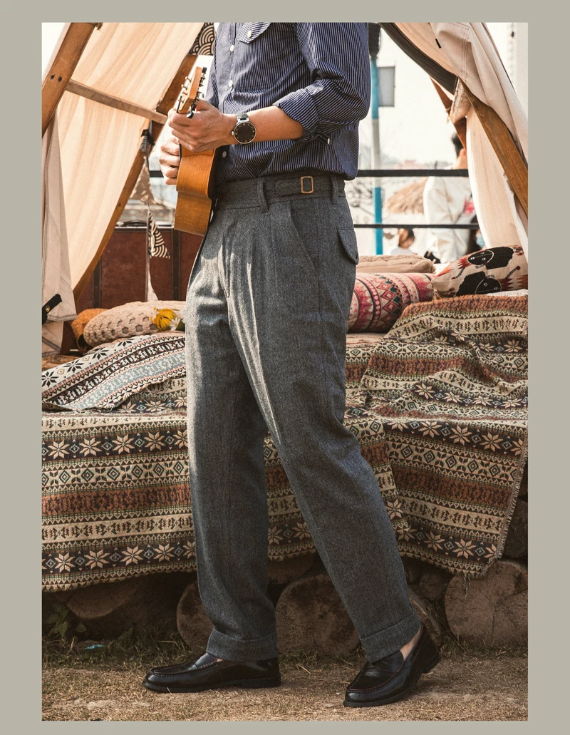 Красный Торнадо Британский шерстяной Гуркха Формальные Брюки Ретро мужские повседневные брюки серый