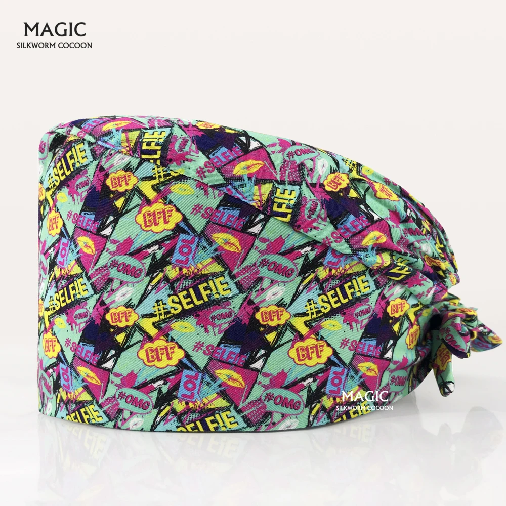 Шапка-медицинские шапочки для косметолога, мультяшный матовый принт...