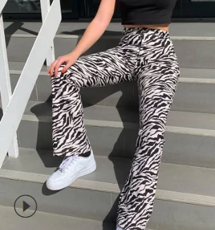 Женские прямые брюки Y2K с принтом зебры в стиле Харадзюку, повседневные эластичные длинные брюки с высокой талией, женская модная одежда, уличная одежда