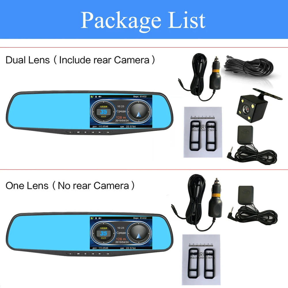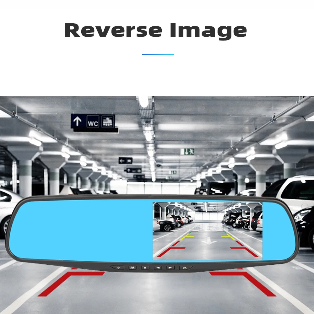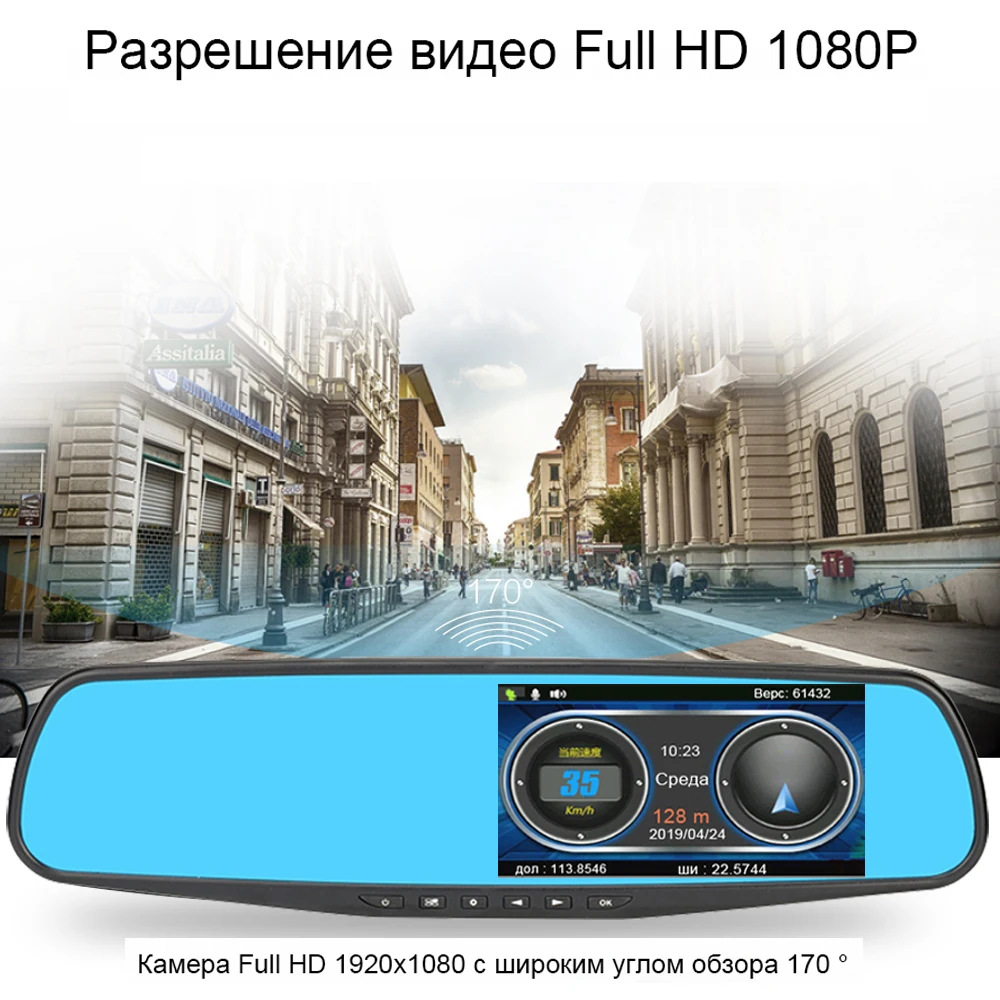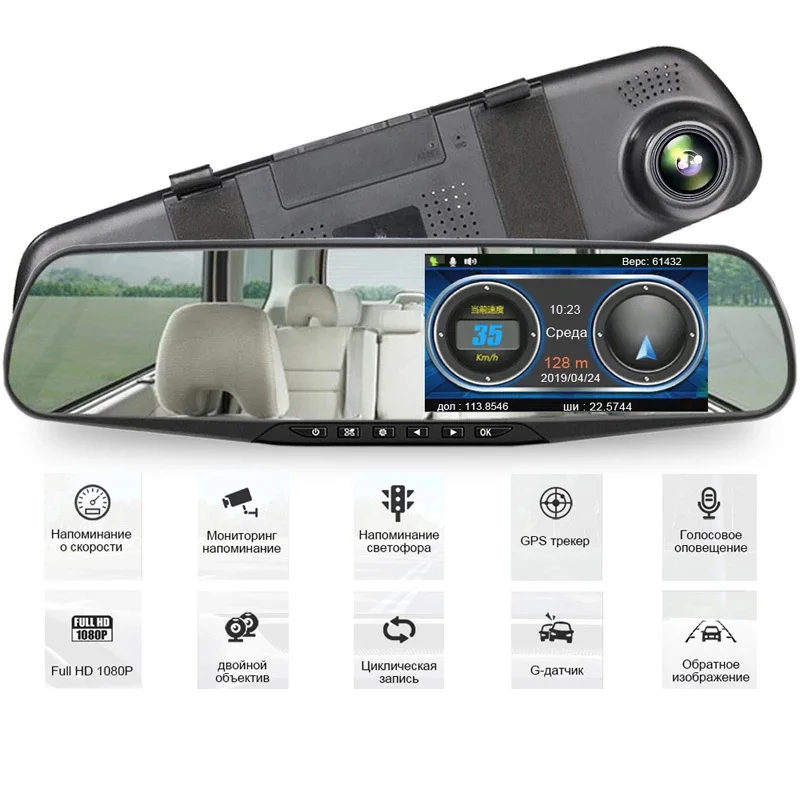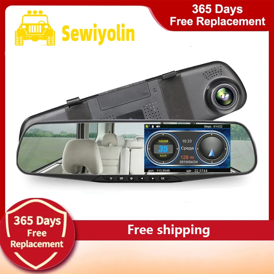 Автомобильный видеорегистратор, 4,3 дюйма, двойной объектив, зеркало заднего вида