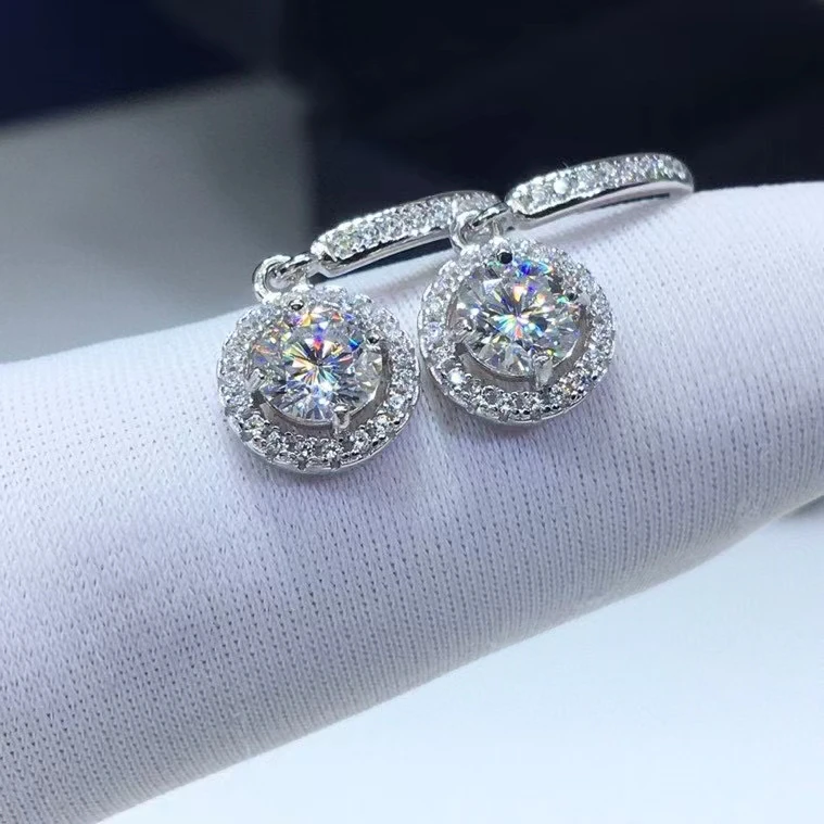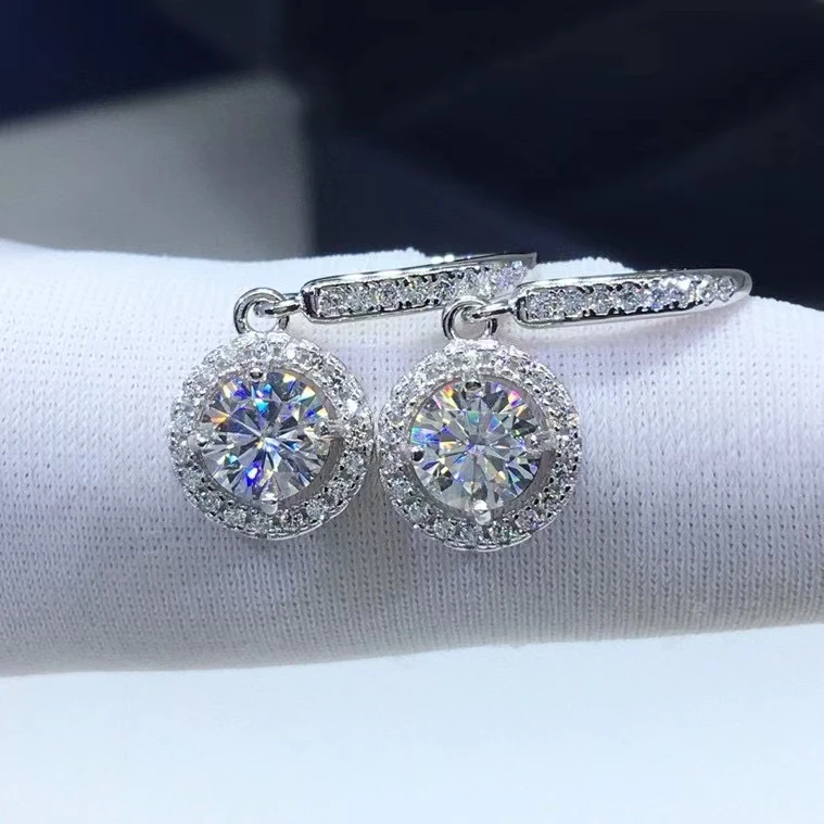 Превосходные бриллиантовые серьги с муассанитом, круглые серебряные...