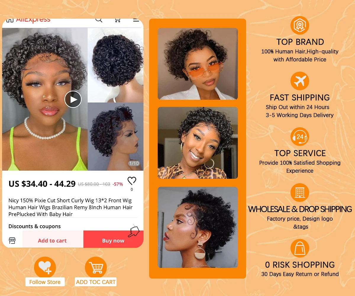 Парик фея, Короткие вьющиеся волосы, парики из человеческих волос, ...
