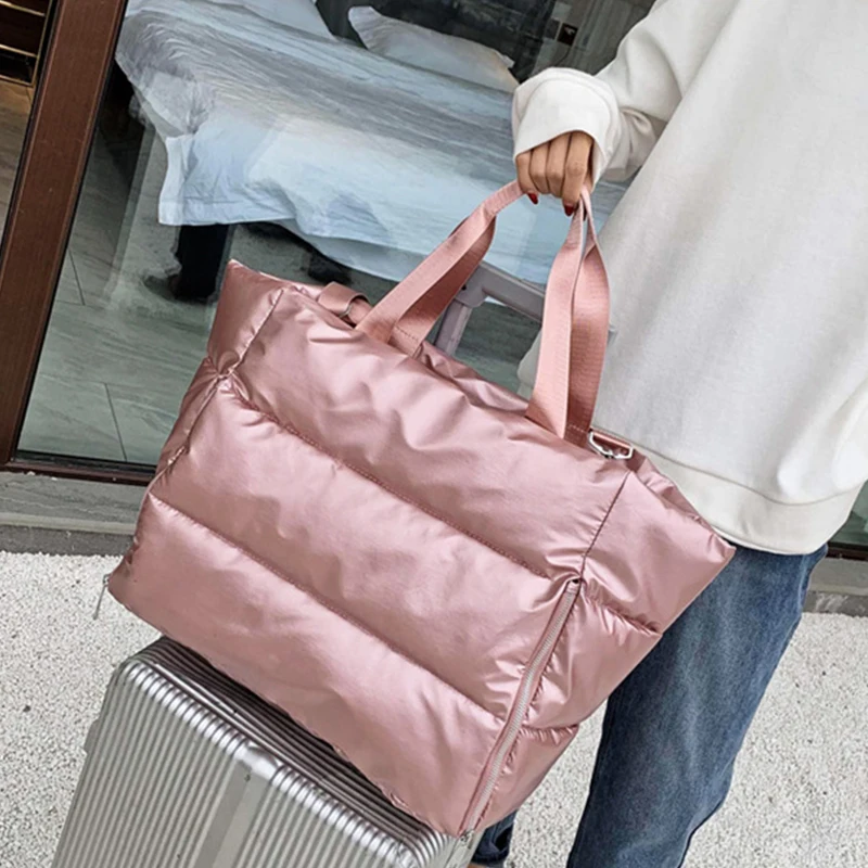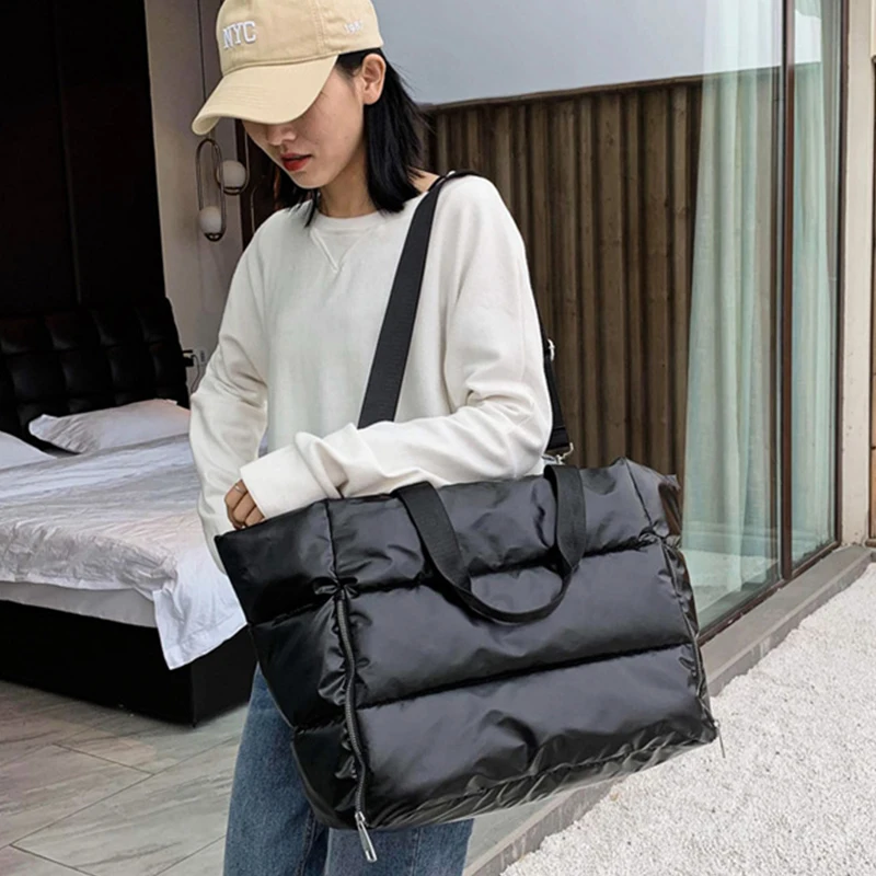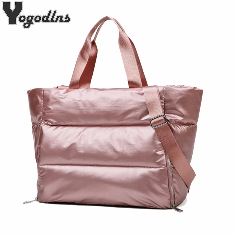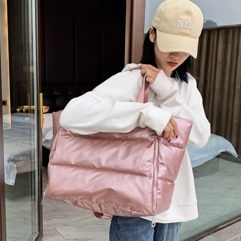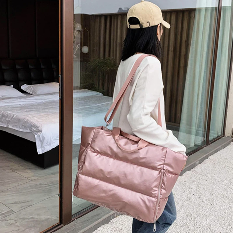 Зимняя Большая вместительная водонепроницаемая сумка-тоут через плечо для женщин, хлопковая пуховая сумка через плечо, женские повседневные сумки