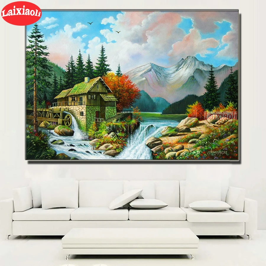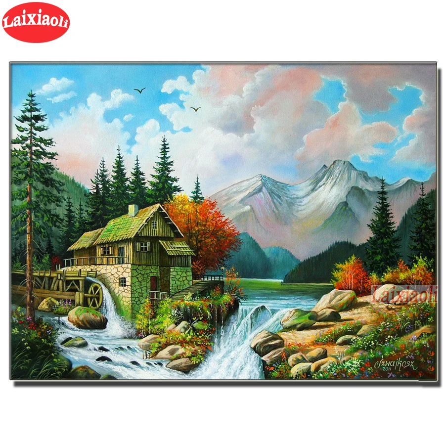 Алмазная 5D мозаика, набор для алмазной вышивки сделай сам, с изображением природного водопада, гор, пейзажа, мозаика, украшение для дома