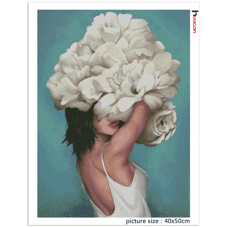 Huacan полноразмерная квадратнаякруглая алмазная живопись женщина цветок Искусственный Пион Цветочная мозаика домашний декор
