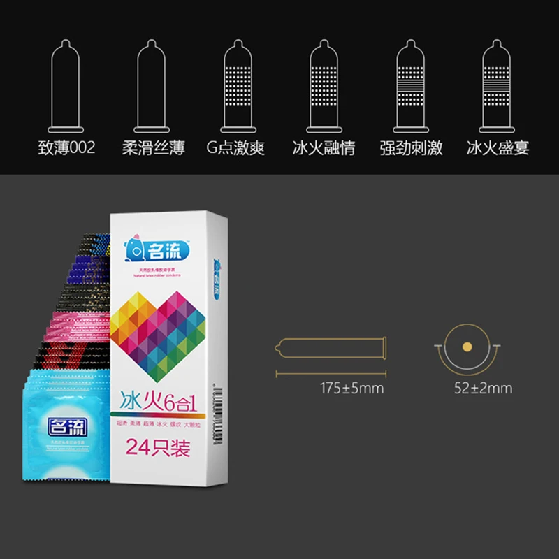 24 шт., ультратонкие презервативы из натурального латекса, 6 в 1
