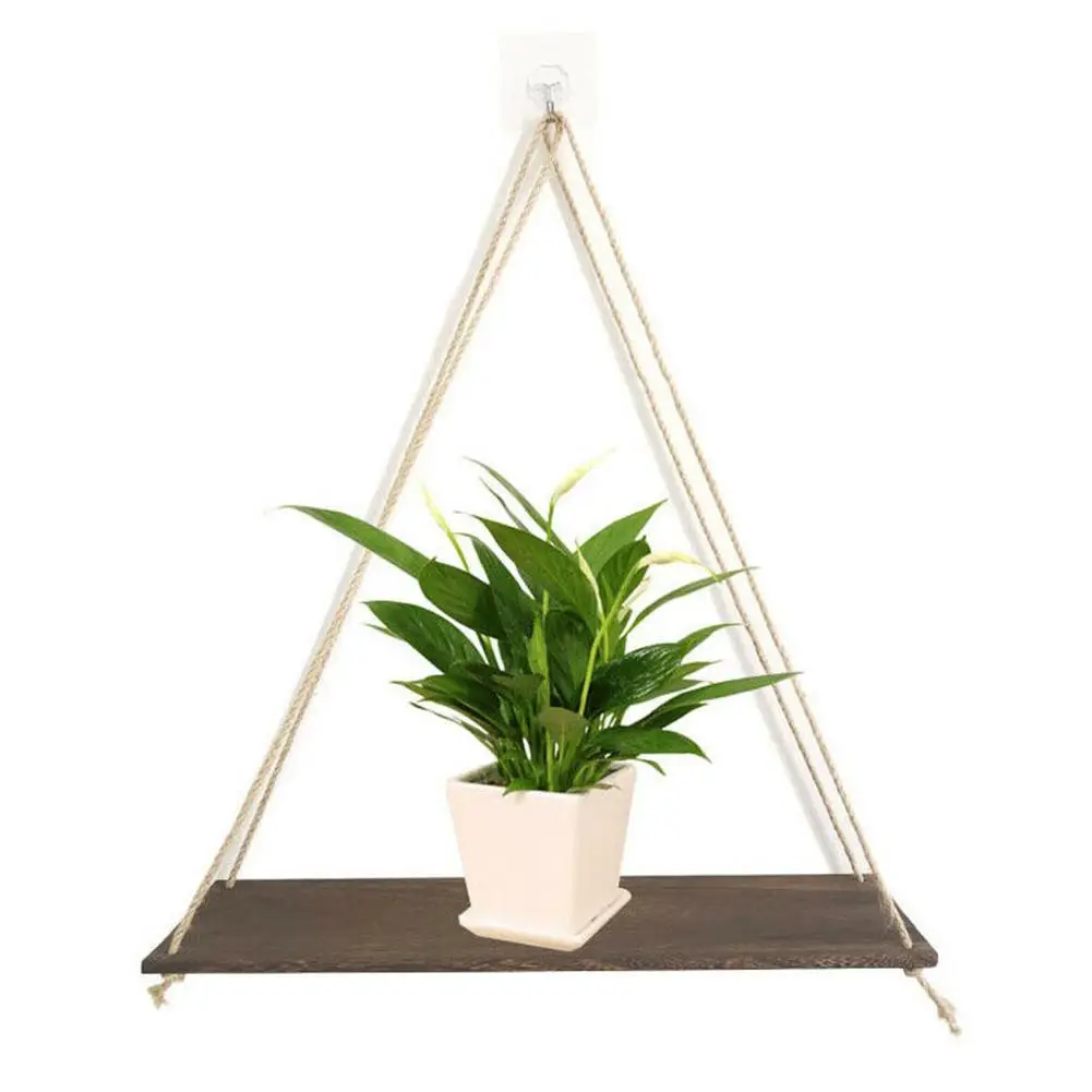 Подставка для цветочного горшка, деревянная веревка для качелей, настенное крепление, плавающая полка, цветочное украшение для ванной комнаты, 1 шт.