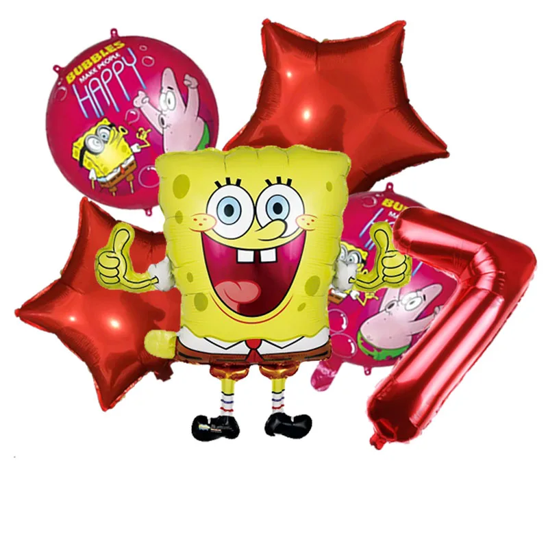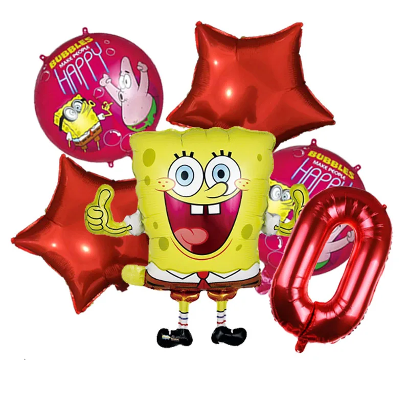 Алюминиевая Пленка воздушный шар посылка: 32 дюйма номер 1 шт + 18 дюймов пентаграмма воздушный шар 2шт + 18 дюймов Губка Боб мяч 2шт + 69x6 0 см воздушный шар Губка Боб 1 шт