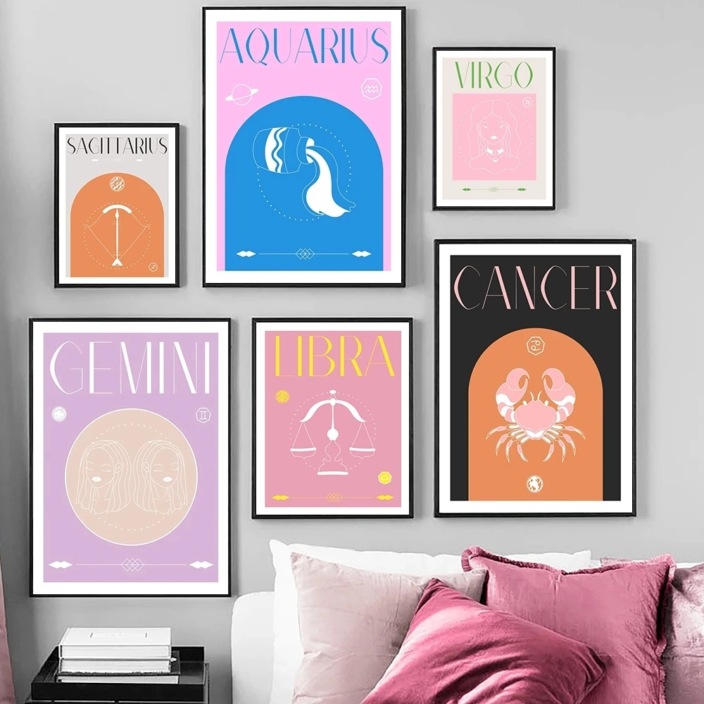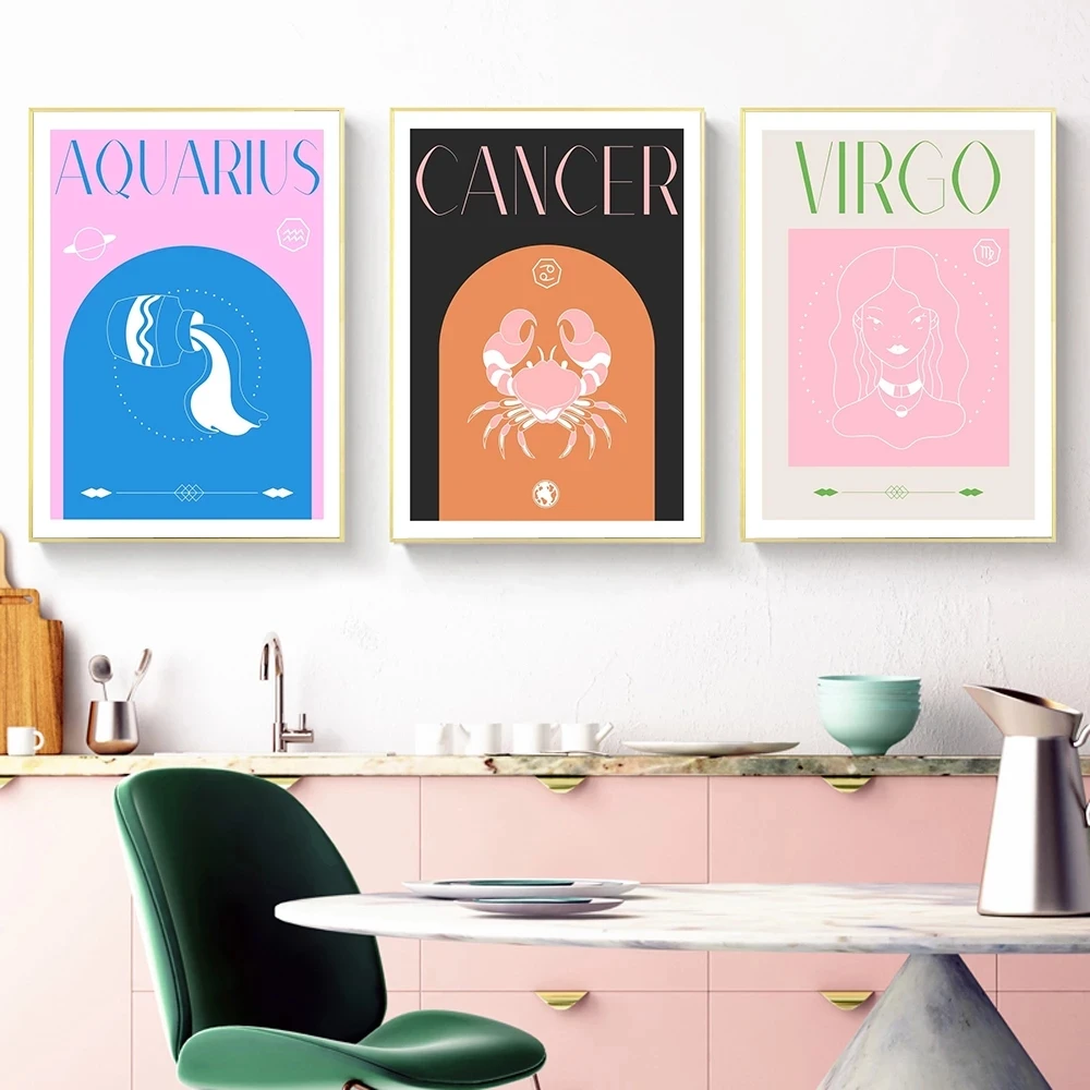 Настенное искусство созвездия Холст плакат Астрология скандинавский Рак Зодиак картина весы Дева принты декор дома без рамки картина