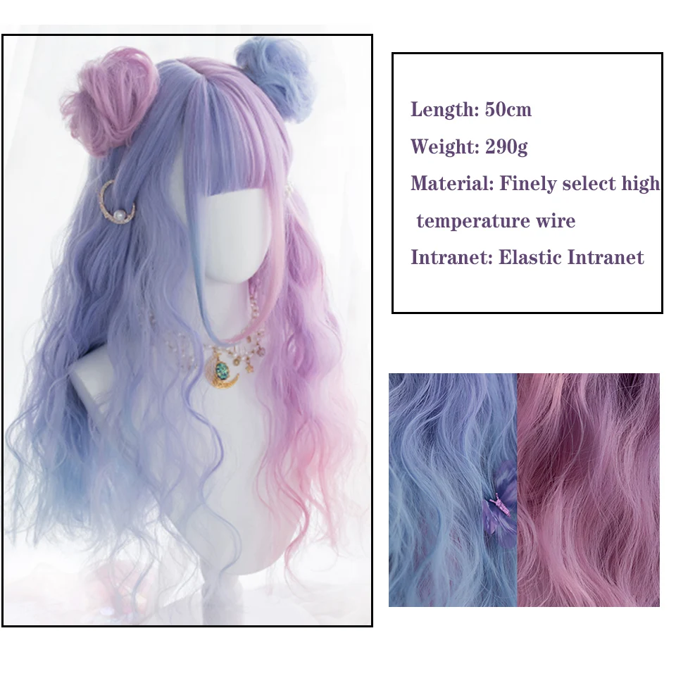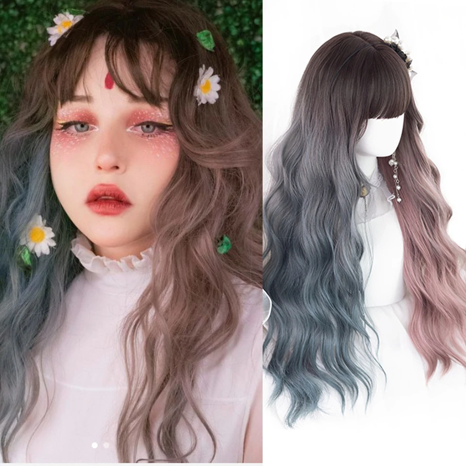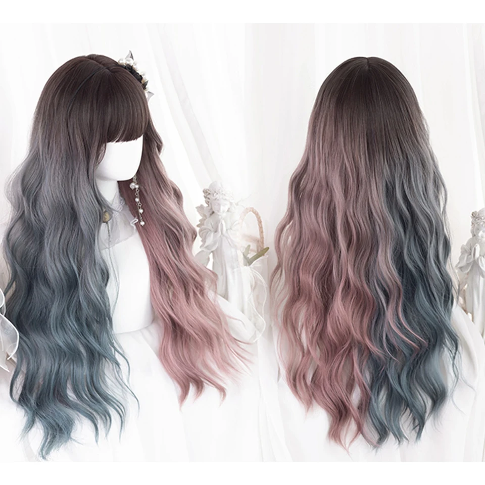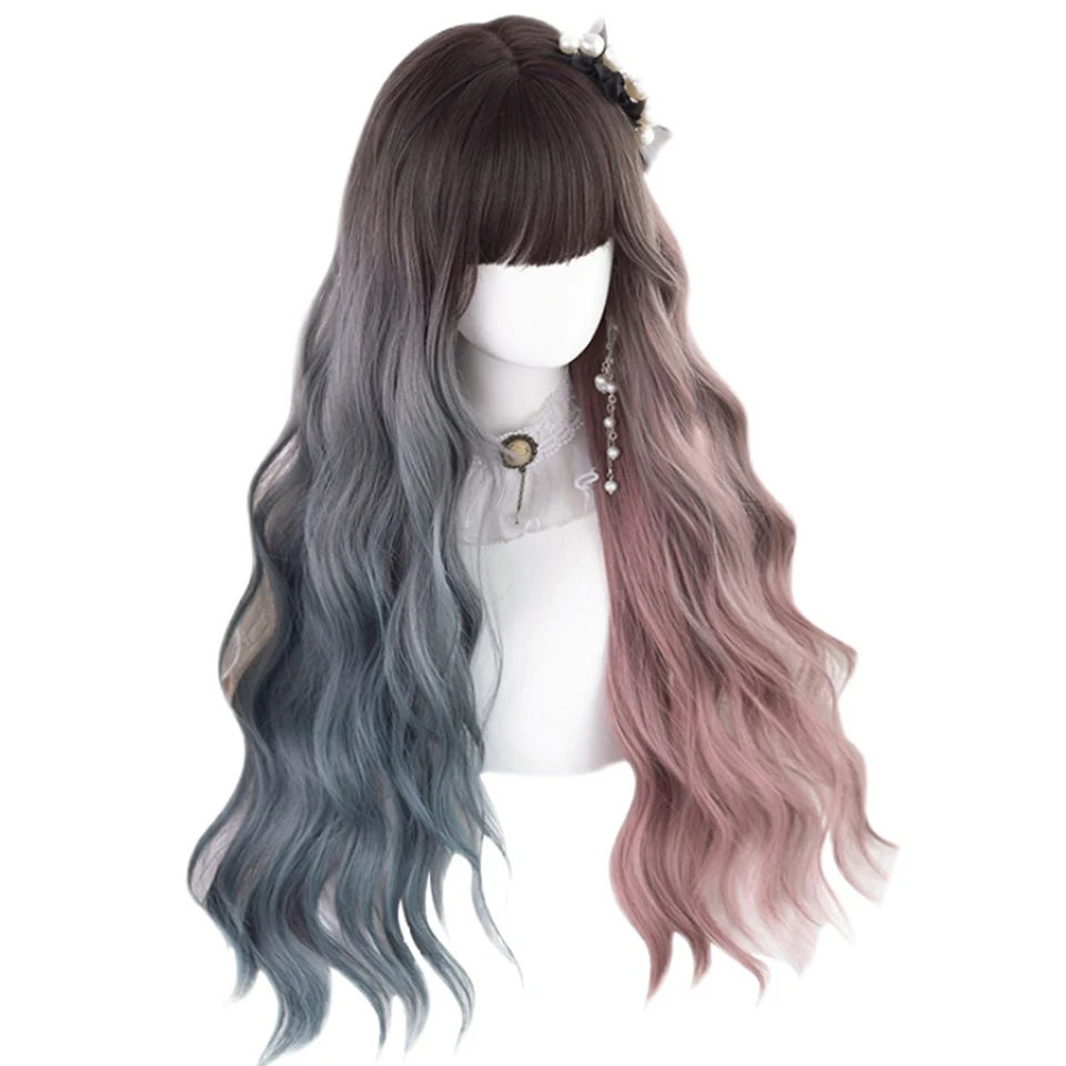 HOUYAN длинные волнистые вьющиеся волосы синтетический парик Женские челки Косплей Лолита розовый синий двухцветный парик устойчивый к высоким температурам