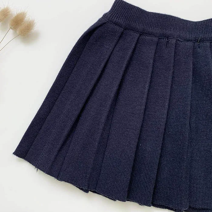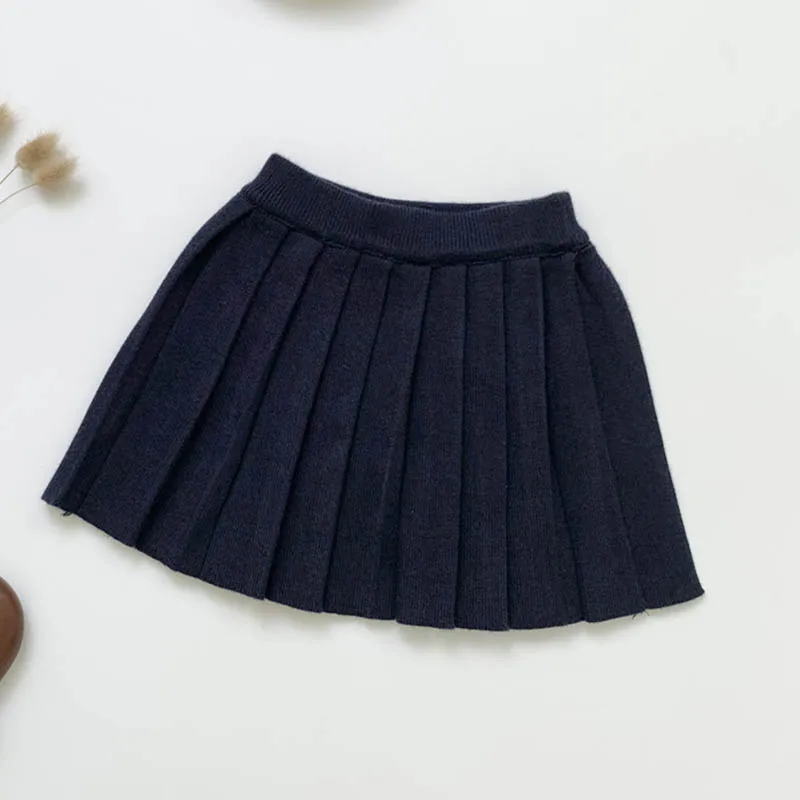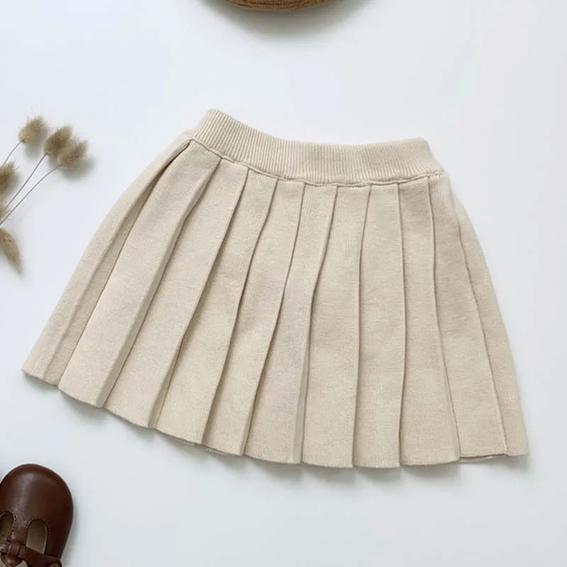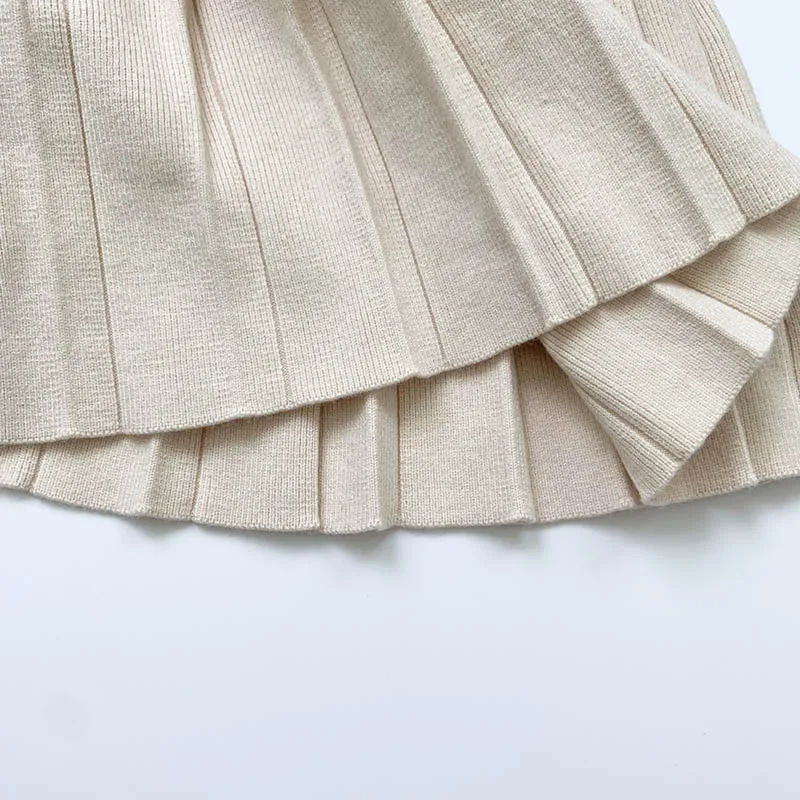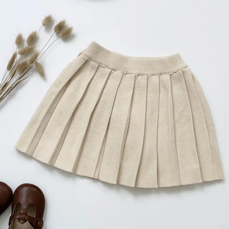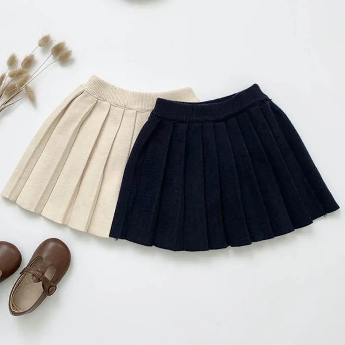 Детская одежда, вязаная юбка для маленьких девочек, плиссированная юбка принцессы, однотонная вязаная плиссированная юбка в студенческом стиле