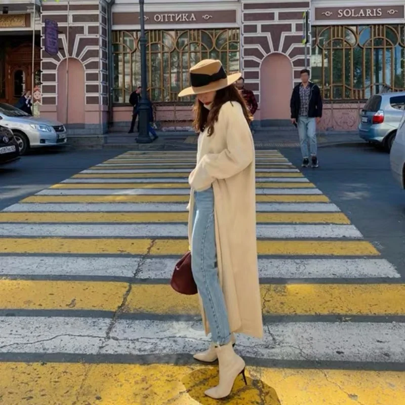 Шикарное шерстяное платье с высоким воротником, женское модное свободное вязаное платье макси в Корейском стиле, Женский мягкий длинный свитер на осень и зиму, одежда