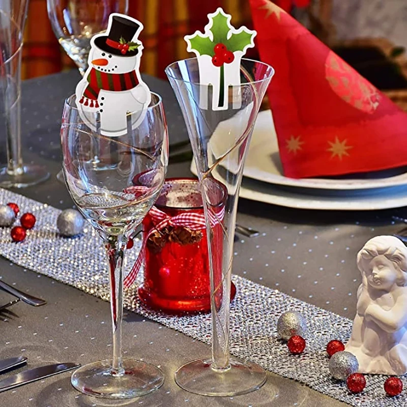 Рождественский бокал для вина украшение с новым годом 2022, снеговик, лось, Санта-Клаус, украшения для вечеринки, домашний декор для стола, барные принадлежности