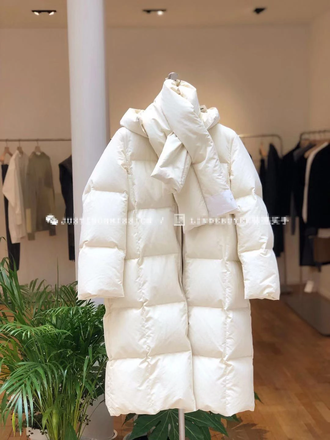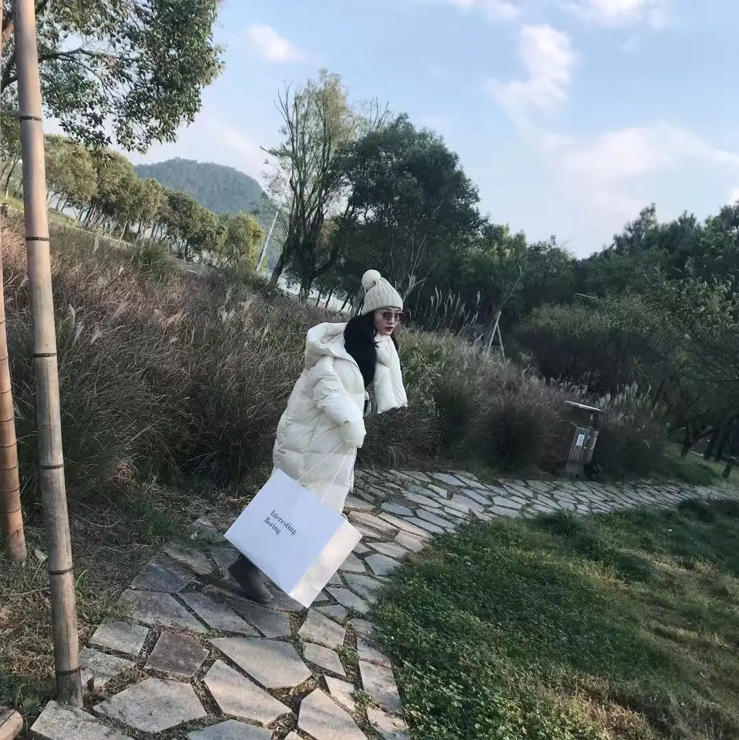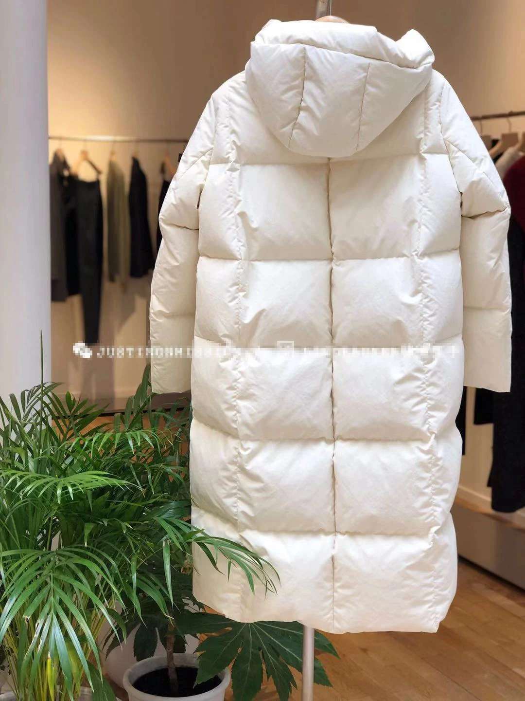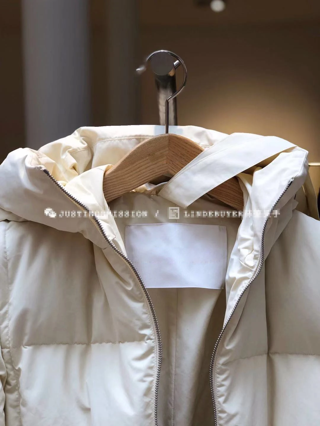 Женский пуховик средней длины, белый пуховик с капюшоном, Осень-зима 2021