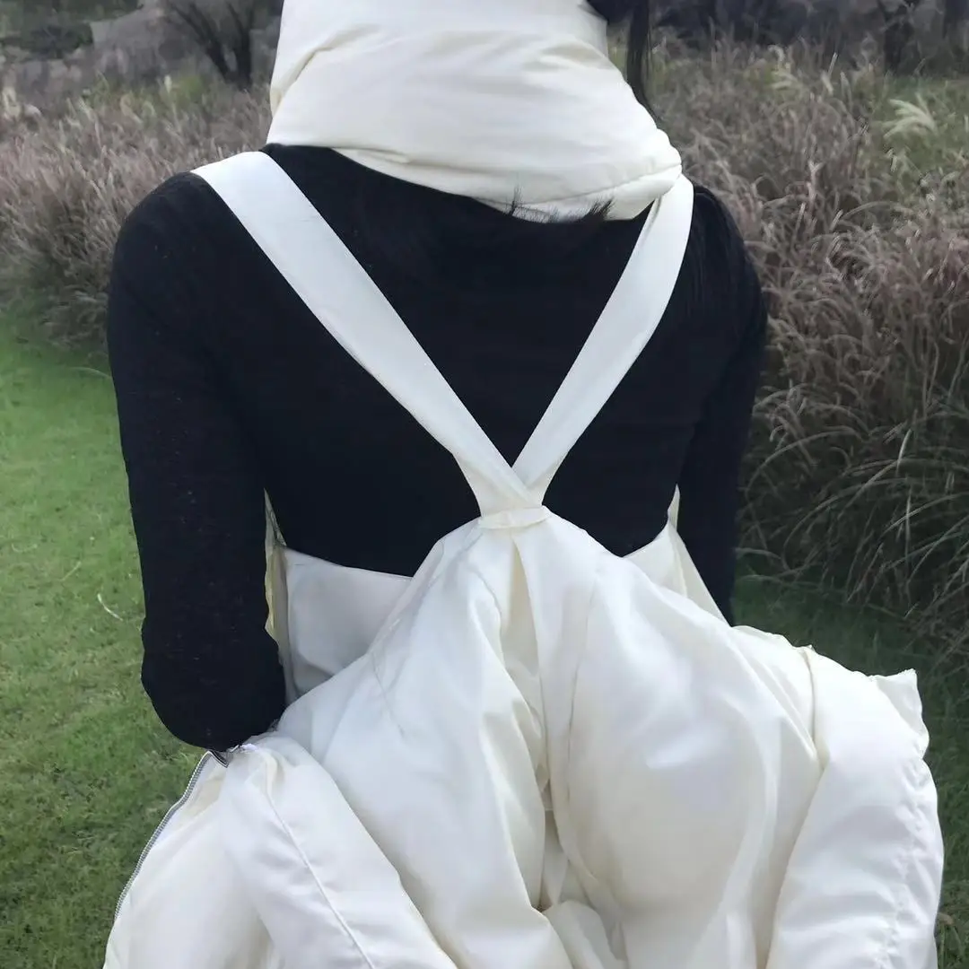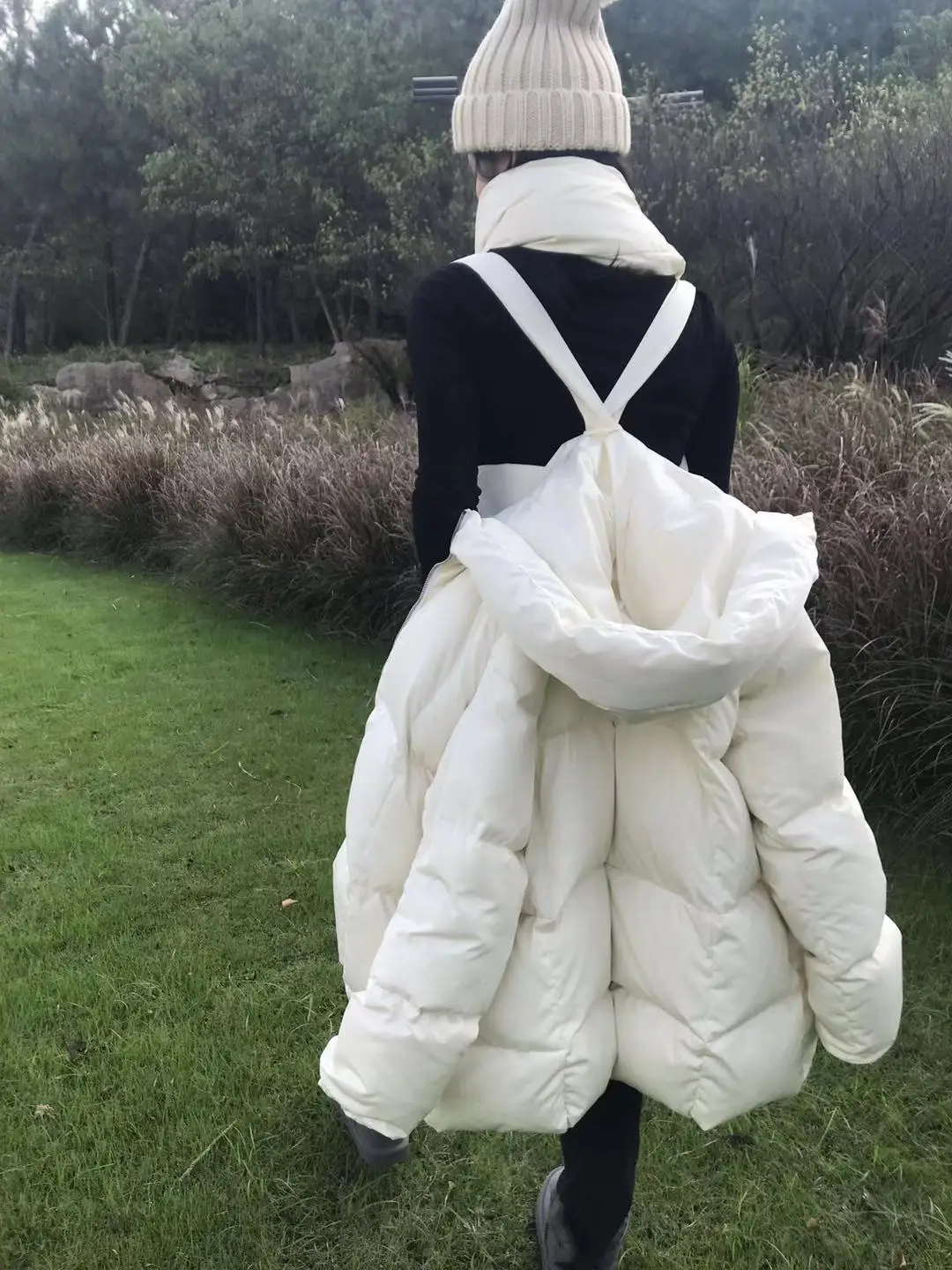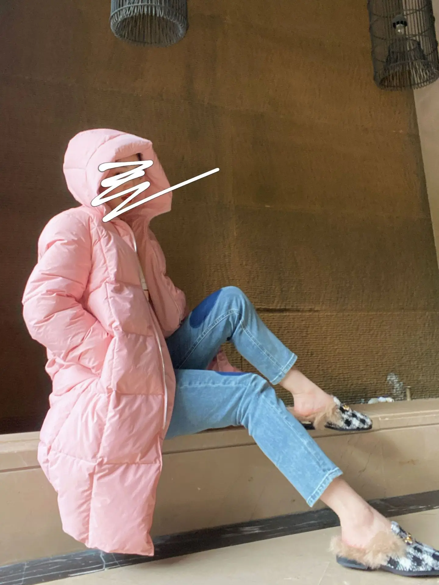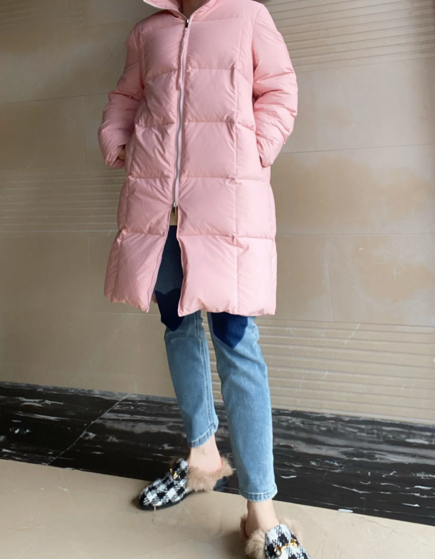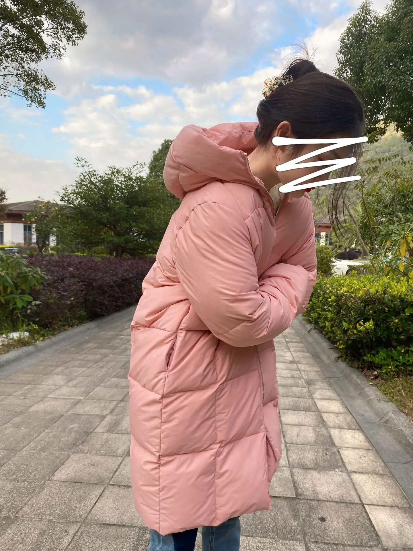 Женский пуховик средней длины, белый пуховик с капюшоном, Осень-зима 2021