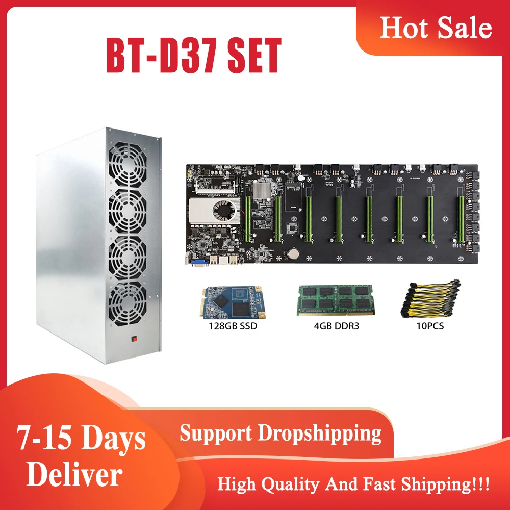 Комплект материнской платы BTC D37, основная плата для майнинга биткоинов, криптовалютер, шасси 8 GPU, криптовалютериум для биткоинов с 4 поклонниками
