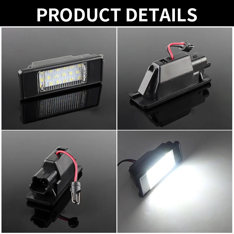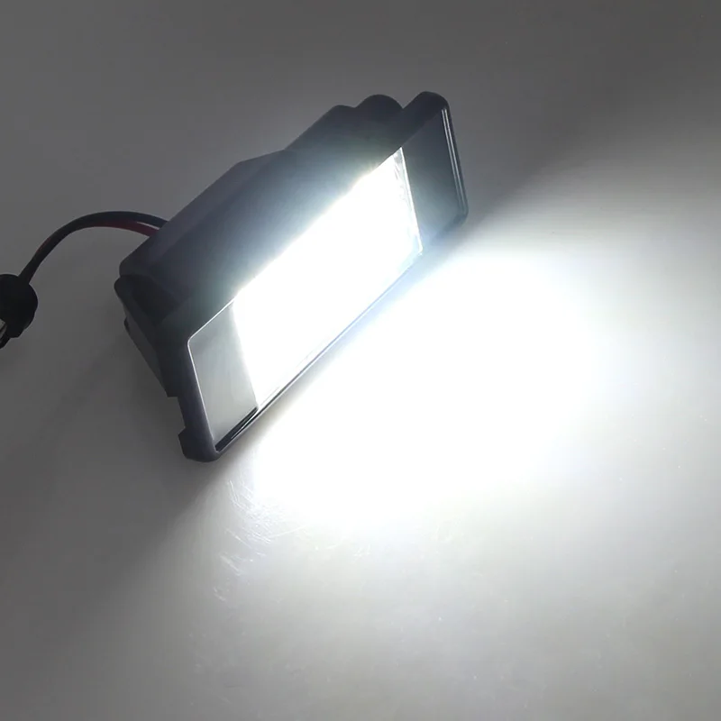 Пара 18SMD Мощный светодиодный светильник номерного знакаПодключи и работай, быстрое мгновенное время запускаПростая установка, прямая замена с OEM качеством и монтажомСветильник белого цвета 6500KСпециально разработан без кода предупреждения об ошибках, предупреждающее сообщение, не требуется перепрограммирование компьютераВысокая яркость. Специальная Передняя прозрачная линза для широкого распространения светодиодный светильник