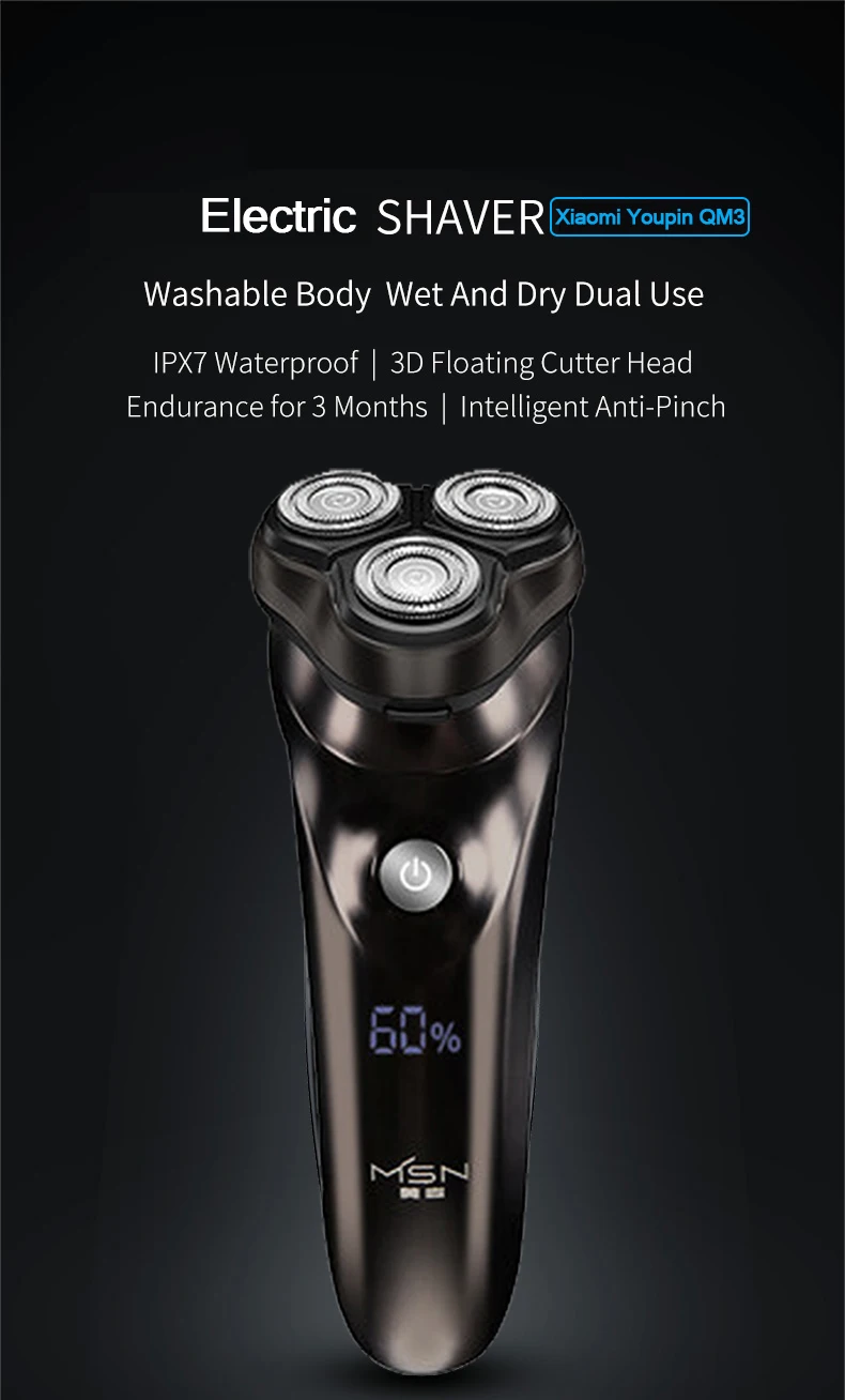 1. Модель: MEISEN2. Материал: АБС + нержавеющая сталь3. Лезвие: нержавеющая сталь4. Тип работы: электрический5. Особенности: 3D плавающая Три головки бритвы6. Условия использования: сухой, влажный7. Мощность (Вт): 5 Вт8. Напряжение: 5 В9. Очистка: Моющаяся10. Емкость аккумулятора (мАч): 1400 мАч11. Частота (Гц): 50/60 Гц12. Размер продукта (Д x Ш x В): 15,50x5,10x5,10 см/6,1x2,01x2,01 дюйма комплектация: Электробритва-1 шт. зарядный usb-кабель-1 шт. руководство пользователя-1 шт.