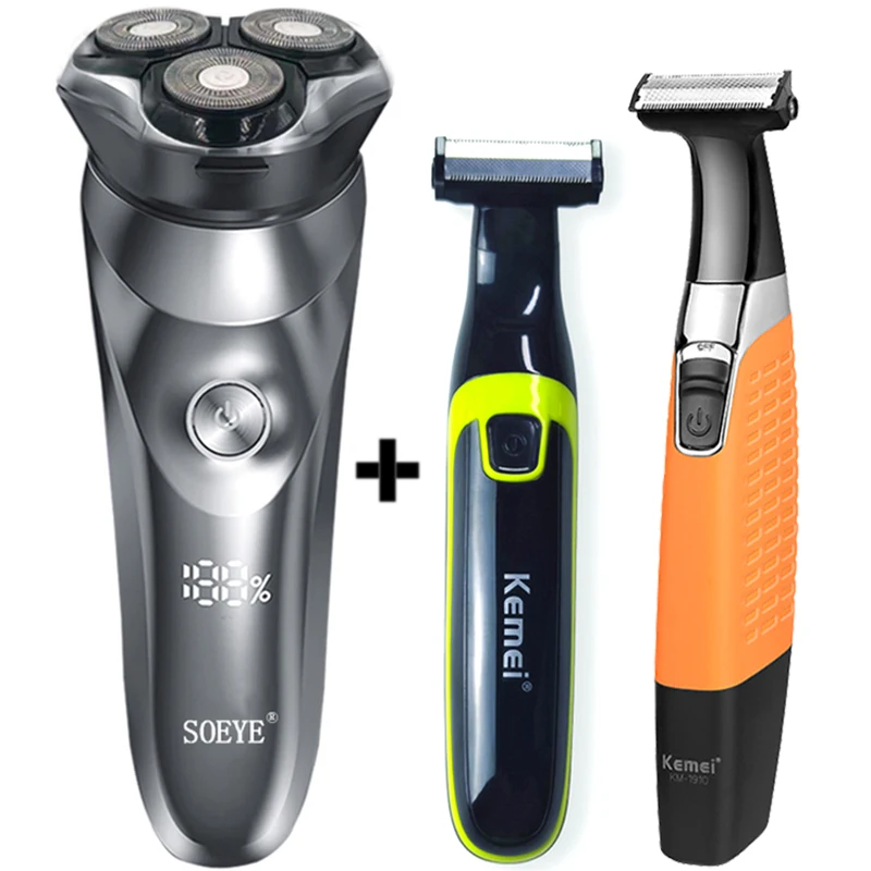 SOEYE электробритва Мужская бритва для бороды зарядка через USB ЖК-дисплей беспроводной электрический станок для бритья инструменты для ухода за лицом 3