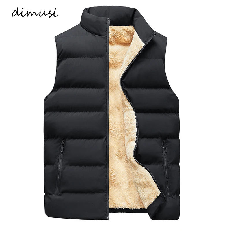 DIMUSI Men's Jacket Sleeveless Vest Winter Fashion Male Cotton-Padded Thicken Vest Coats Casual Fleece Waistcoat Jacket Clothing