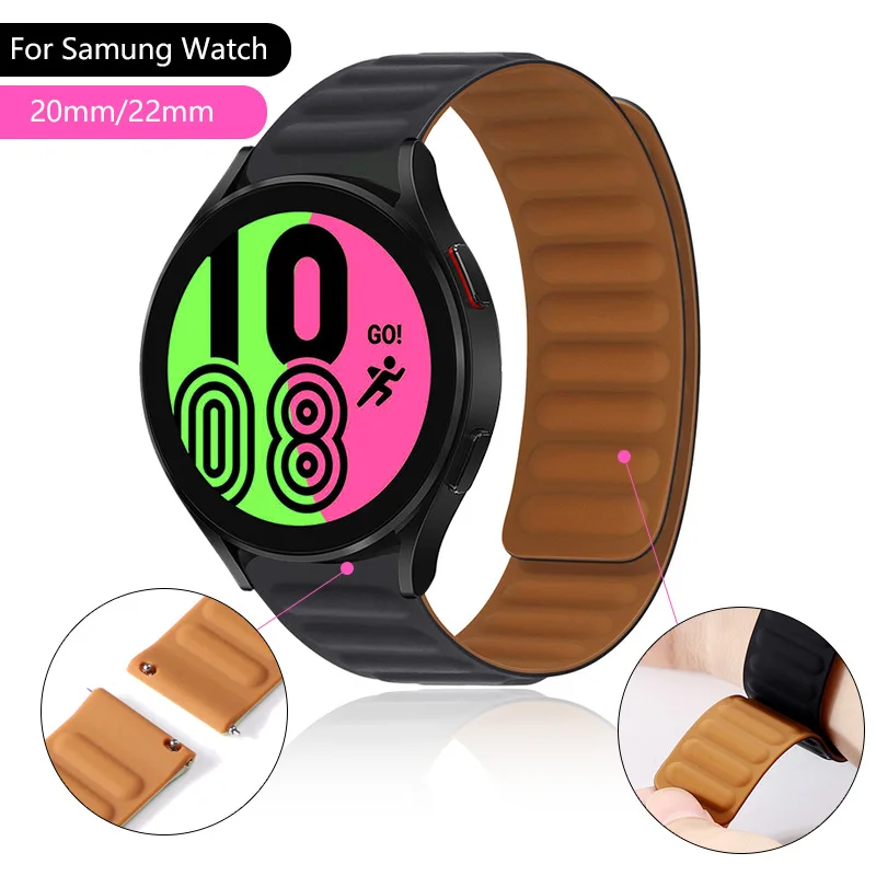 Ремешок силиконовый для Samsung Galaxy Watch Band 42 мм 46 мм, магнитный браслет для Galaxy Watch 3 45 мм 41 мм, Amazfit Bip GTR, 20 мм 22 мм