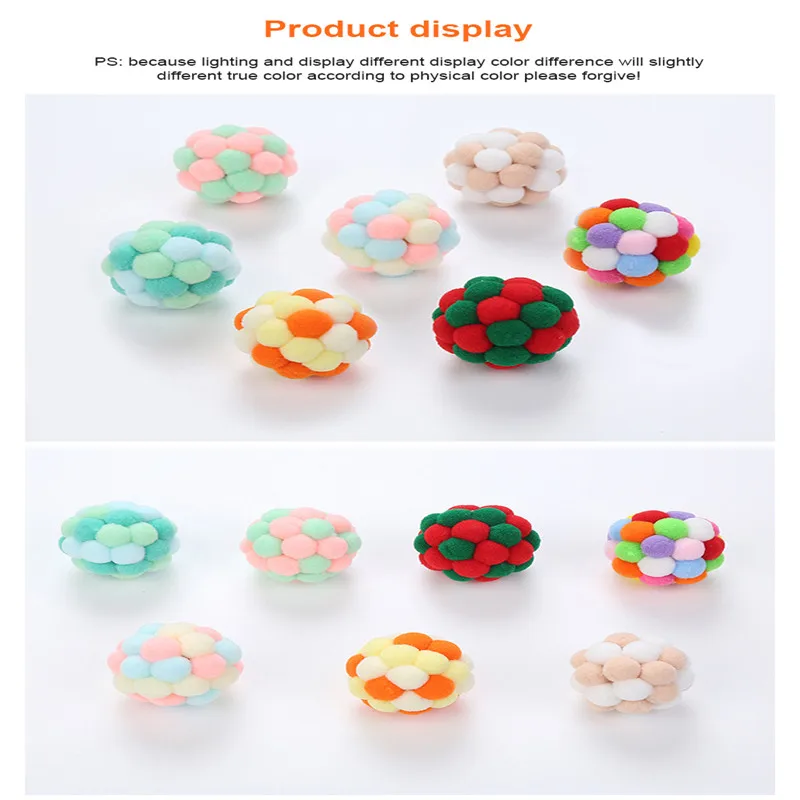 2. Разноцветные плюшевые шарики с колокольчиками, привлекают внимание кошек.