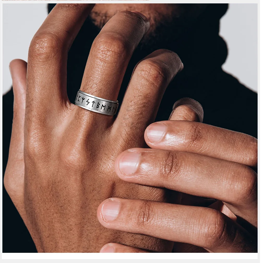 Вращающееся кольцо с рунами. Кольцо ведьмы из нержавеющей стали. Старший ФУТАРК кольца с рунами. Norse языческое кольцо с рунами