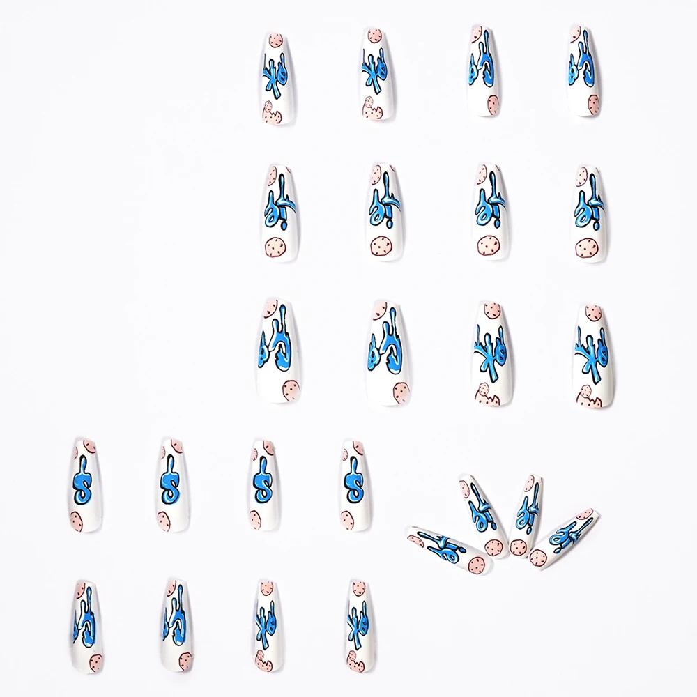 Накладные ногти DingXue, Длинные накладные ногти с голубыми буквами...