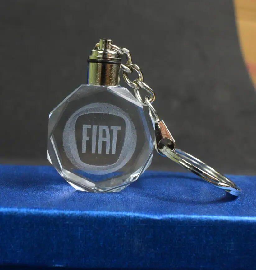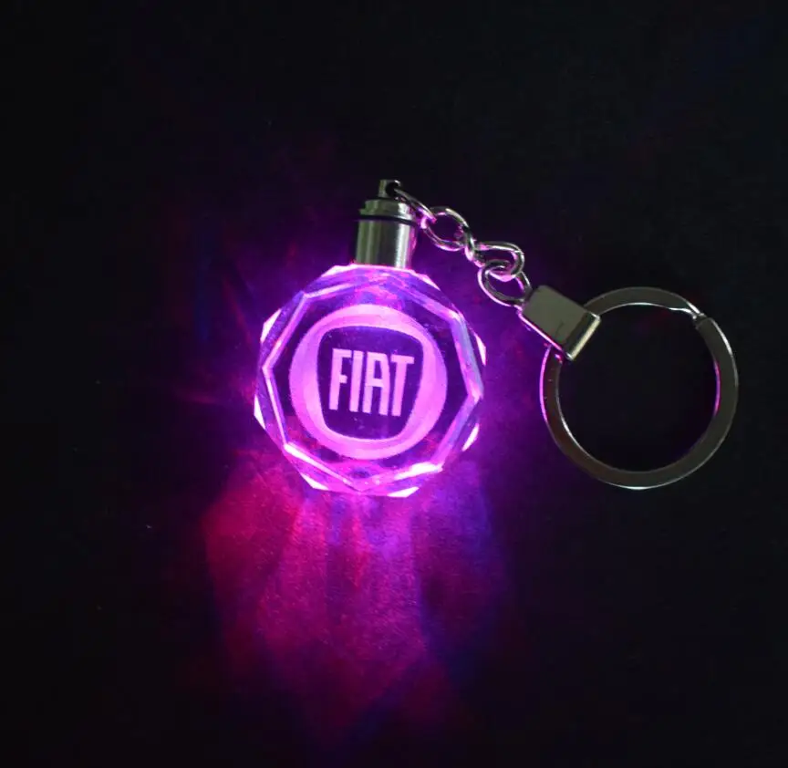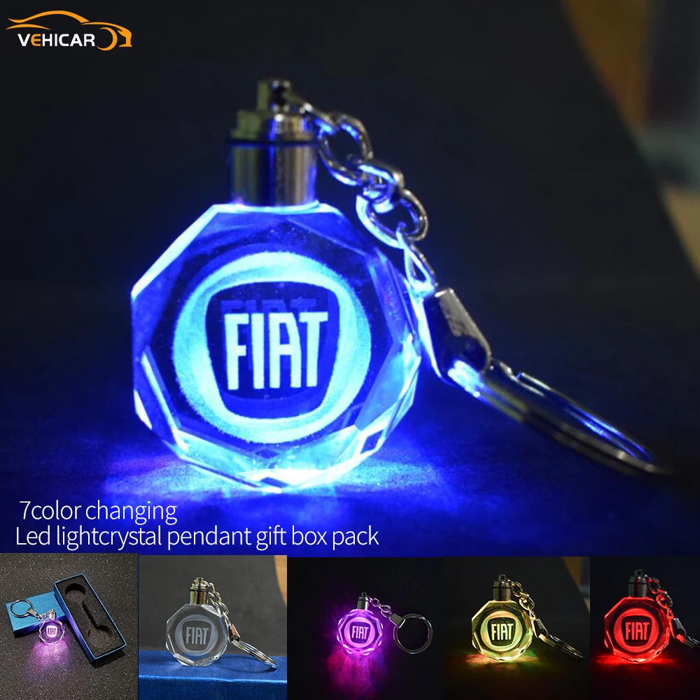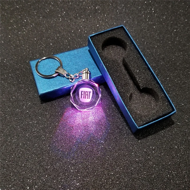 Светящийся брелок для ключей автомобиля, подвеска для ключей Fiat со светодиодсветильник кой, 7 цветов, брелок для ключей с 3D лазерной гравировкой, кристалл K9