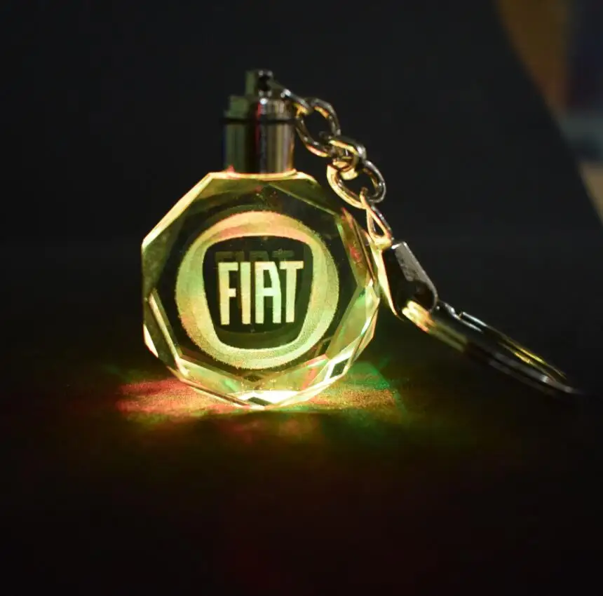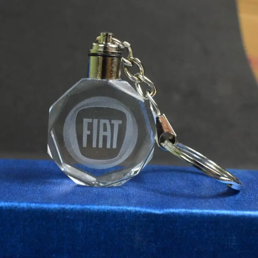Автомобильный светящийся брелок, кулон для Fiat, светодиодный светильник, 7 цветов, меняющий брелок, 3D лазерная гравировка, K9, Кристальный брелок