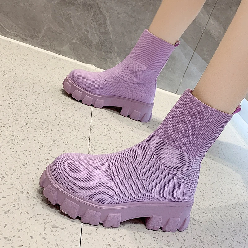 Женские ботинки-носки на платформе, разноцветные армейские ботильон...
