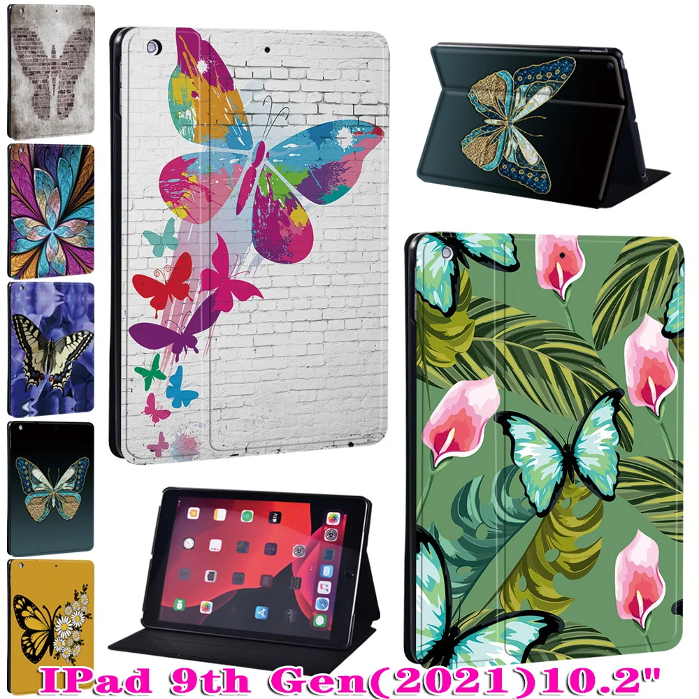 Чехол для планшета Apple iPad 10,2 дюйма, чехол из искусственной кожи 9-го поколения 2021 с принтом бабочки и стилусом