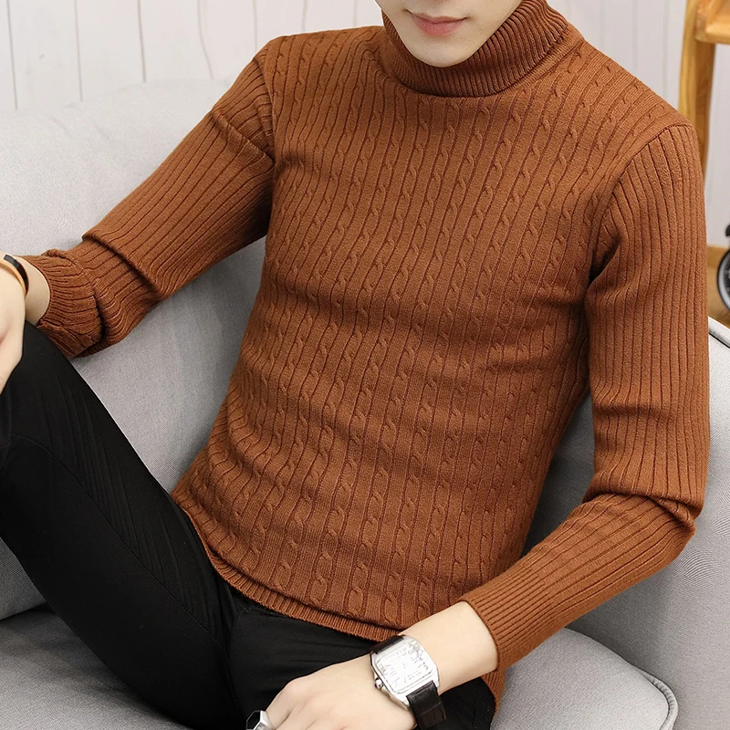 Повседневный мужской зимний плотный свитер с высоким воротником, вя...