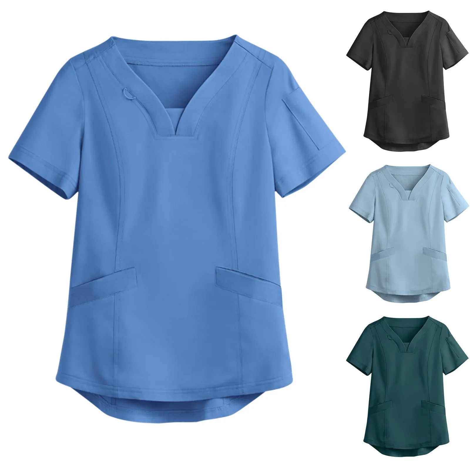 Женская футболка с коротким рукавом с v-образным вырезом и карманом