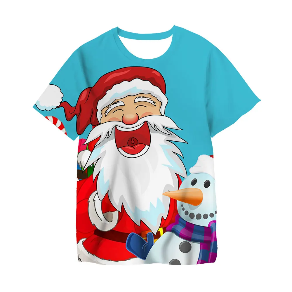 Новинка, летняя футболка с 3d Санта Клаусом, повседневные топы с ко...