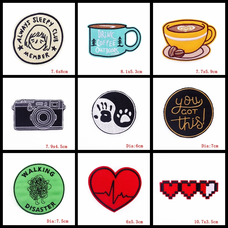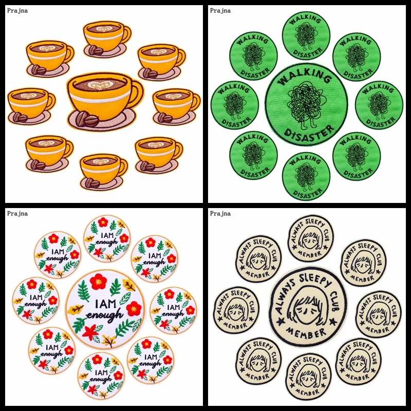 10 шт. Мультяшные аппликационные нашивки Prajna с буквами на одежде, сделай сам, кофейная чашка, термоклейкие вышитые нашивки для одежды